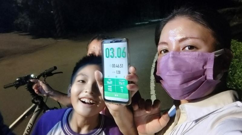 今天也跑了3km,也讓周媽媽也一起達成8:30前跑完3km~^^