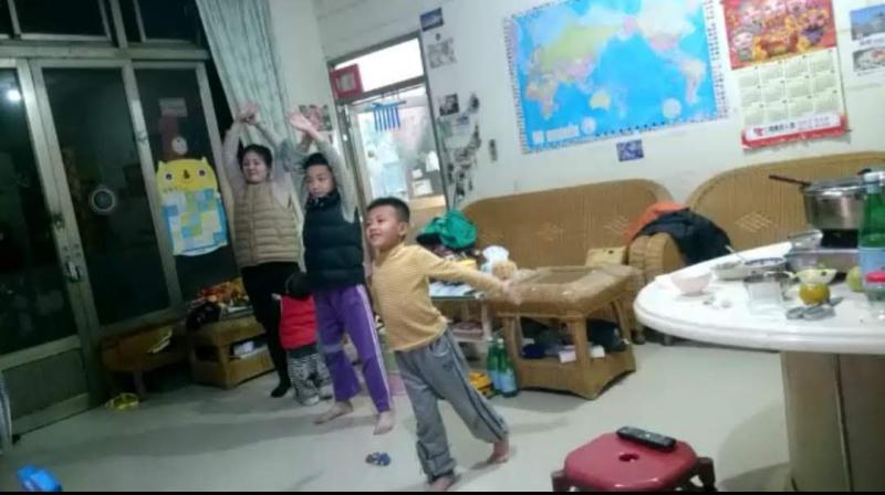 新的一個月份的第一天,今天桃園又下雨了~我們在家做健康操~每個人都努力的運動運動~^^