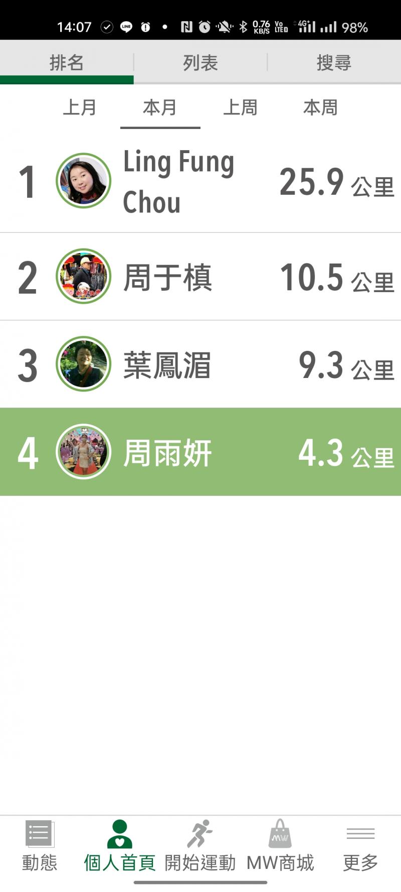 本月團友里程排名