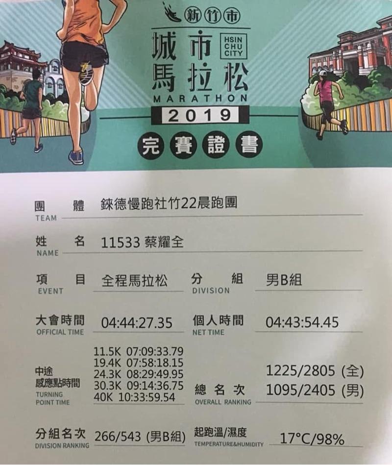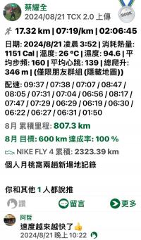 蔡耀全 已連續運動