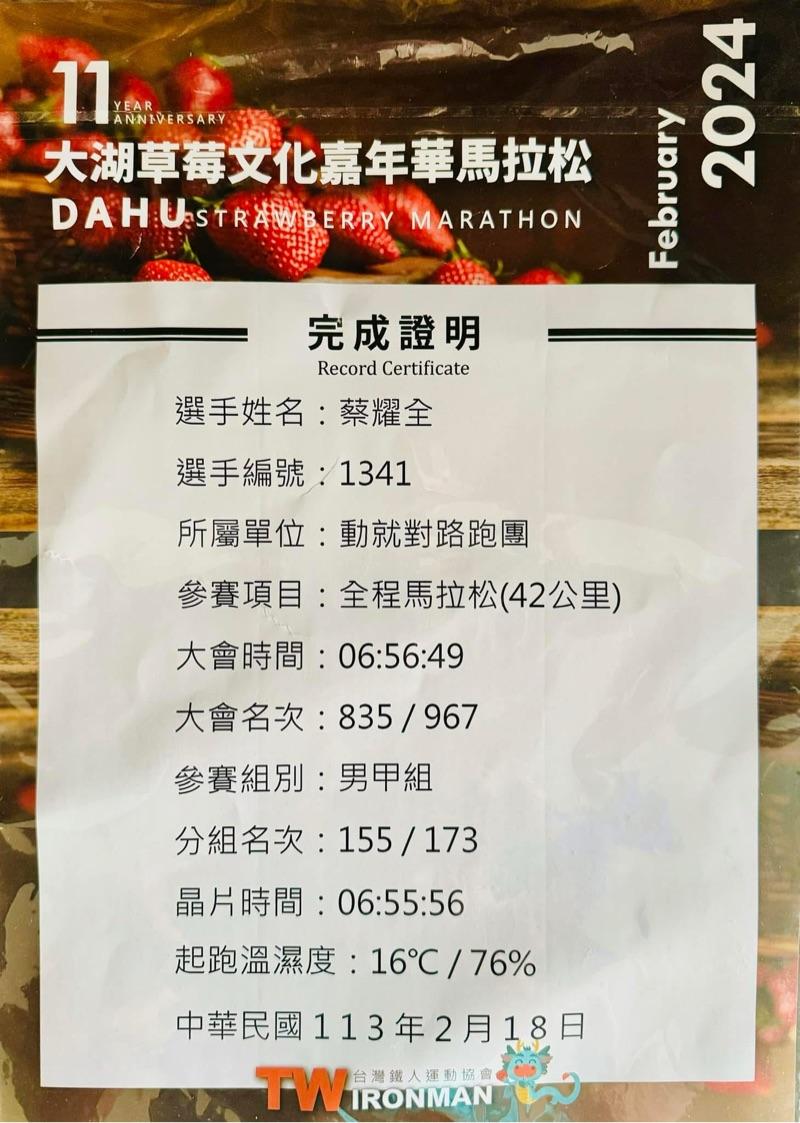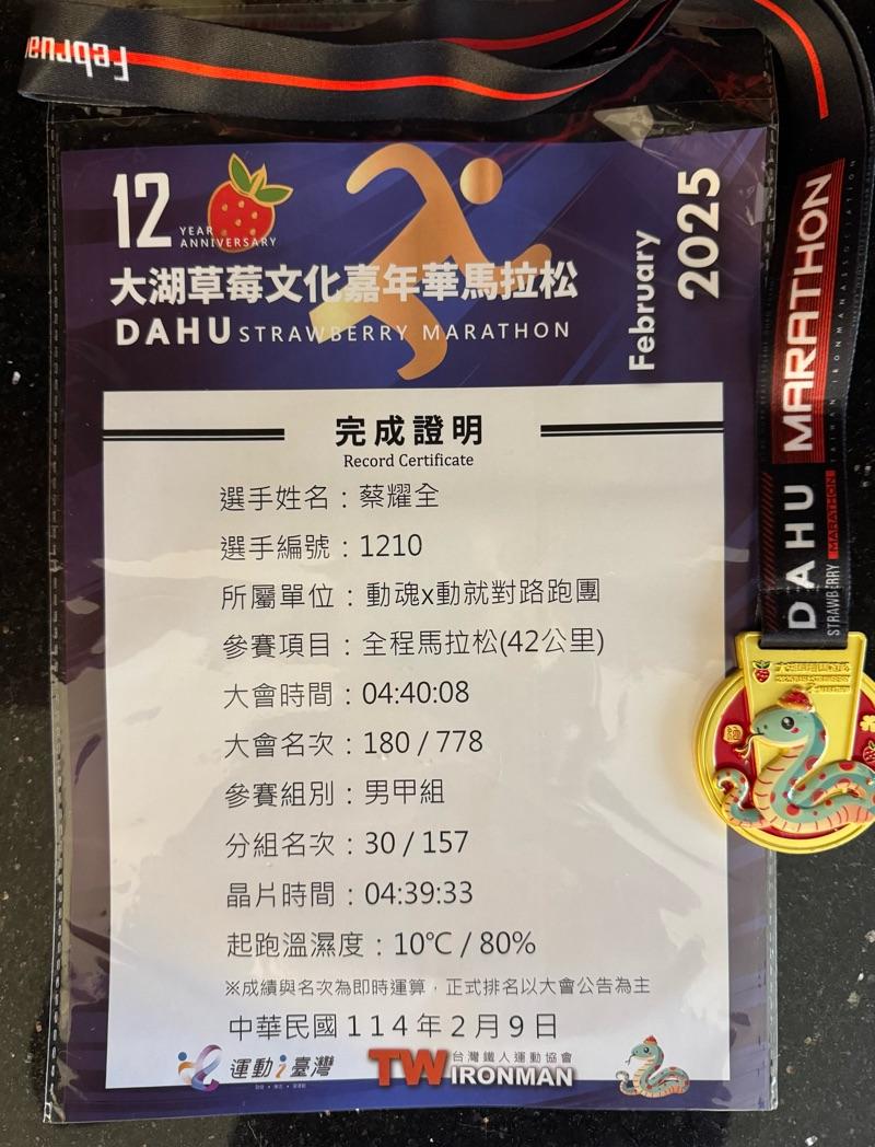 蔡耀全 的運動日誌(2026年2月)
