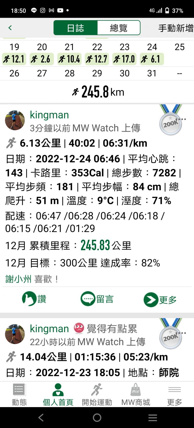 枚運動獎章 | 個人累積總里程