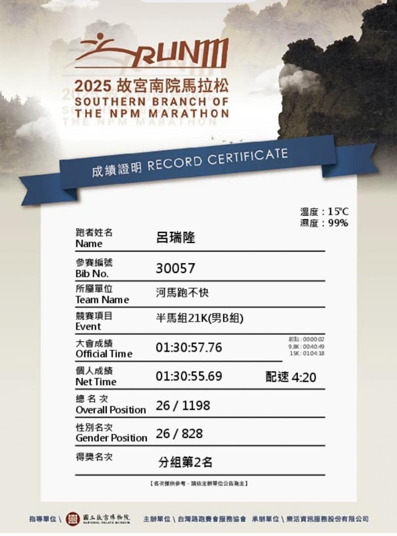 阮嘉隆(河馬跑不快ㄟ老人) 的運動日誌(2025年12月)