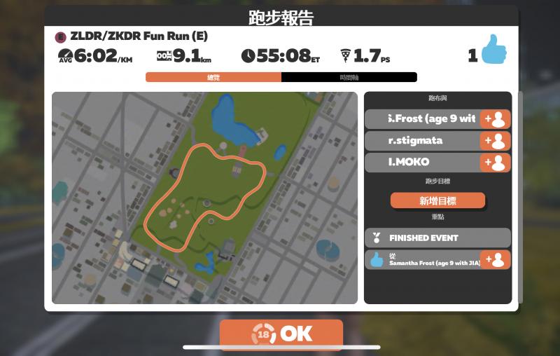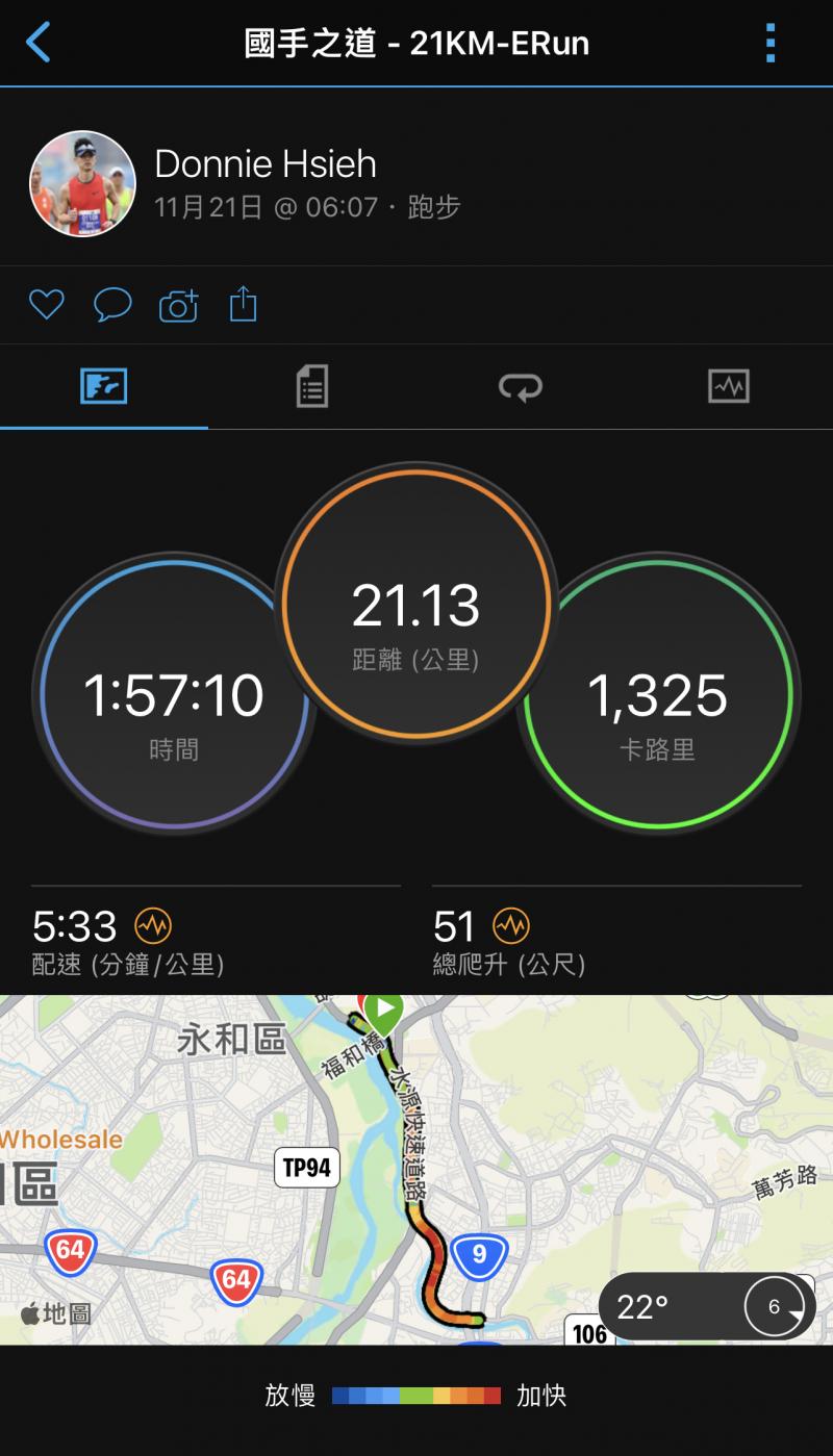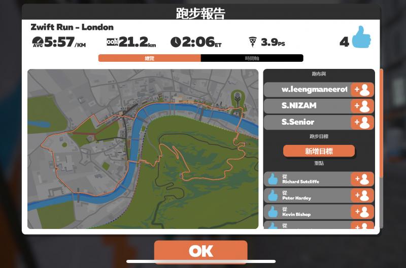 共跑了 56.8 km