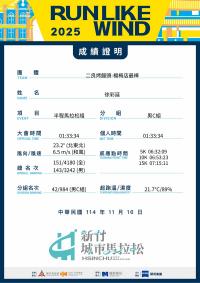 2025/11/16 賀!徐彩延 破PB - 半馬 | 01:33:22