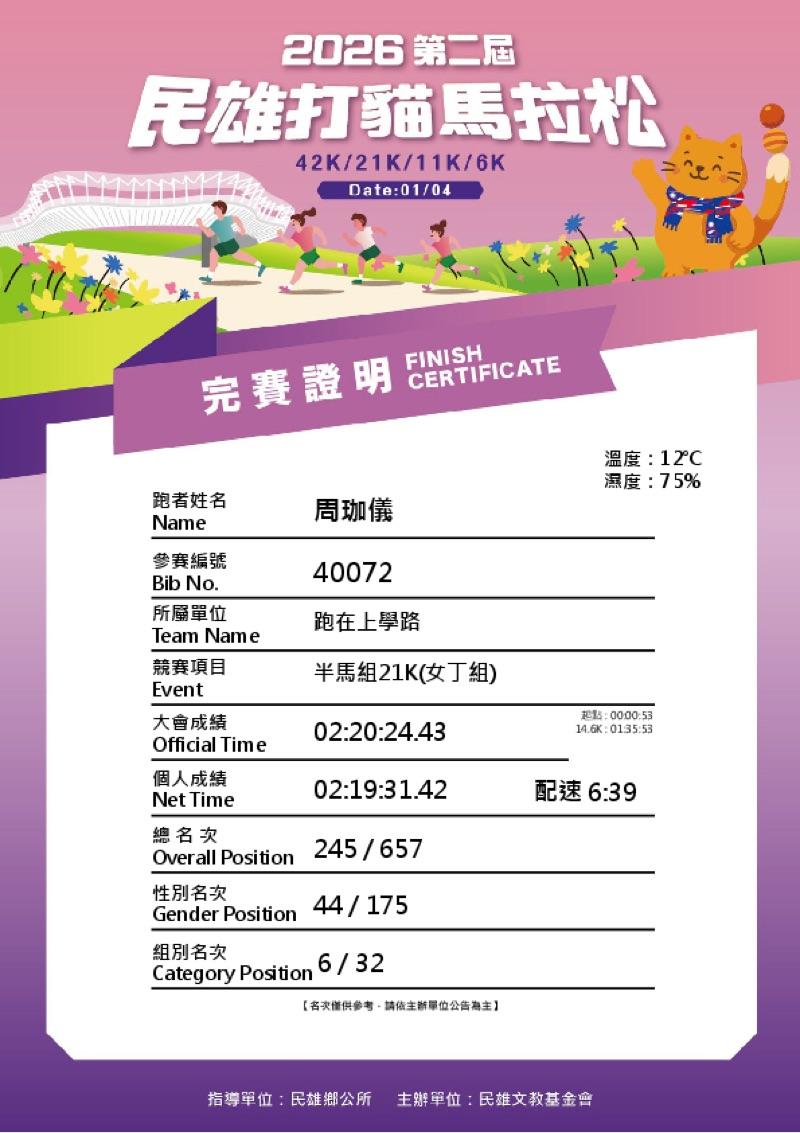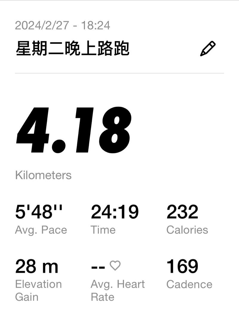 ChouKaka 的運動日誌(2026年2月)