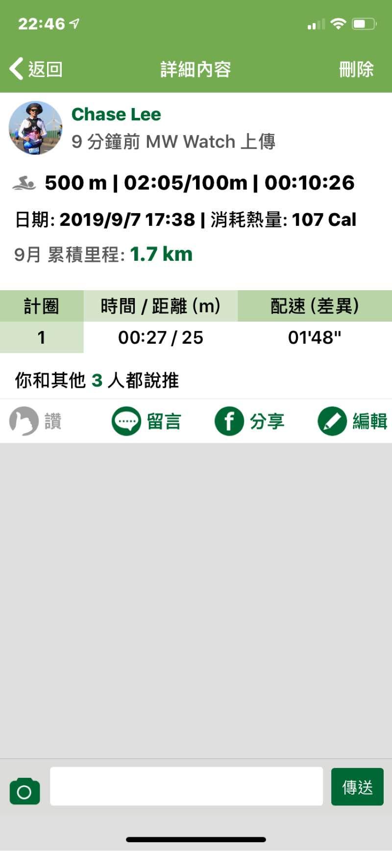 MW2新手請教一下,游泳為什麼總距離及總時間均有;但是各圈速度都沒有記錄?