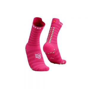 Compressport V4 跑步襪標準筒 白螢光紅