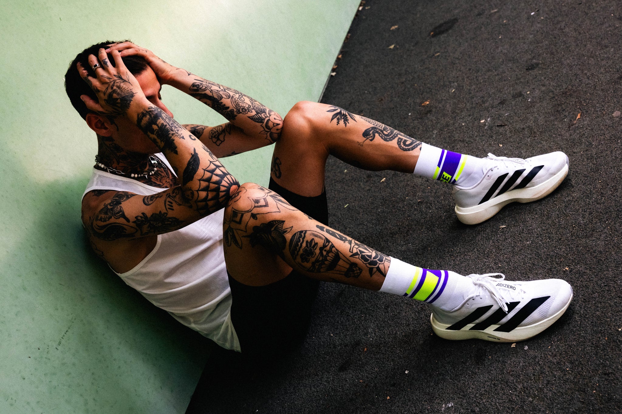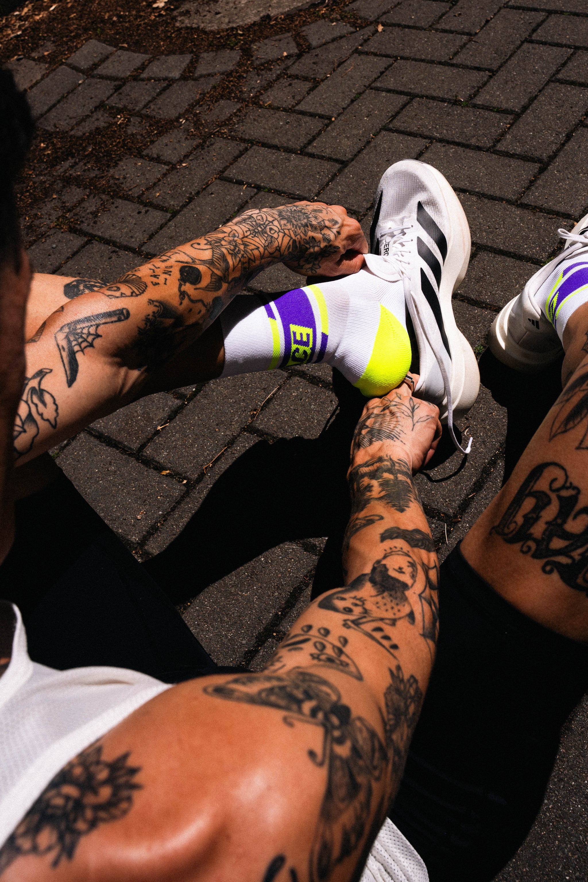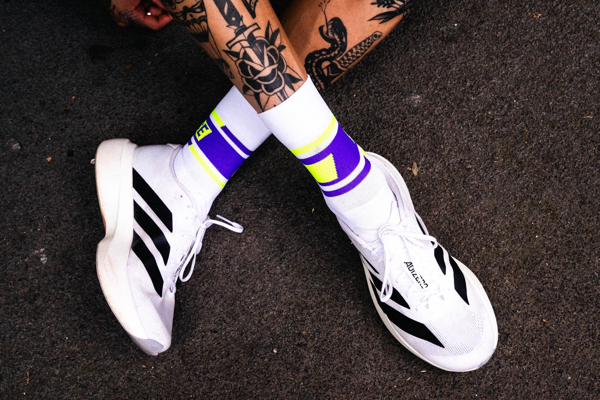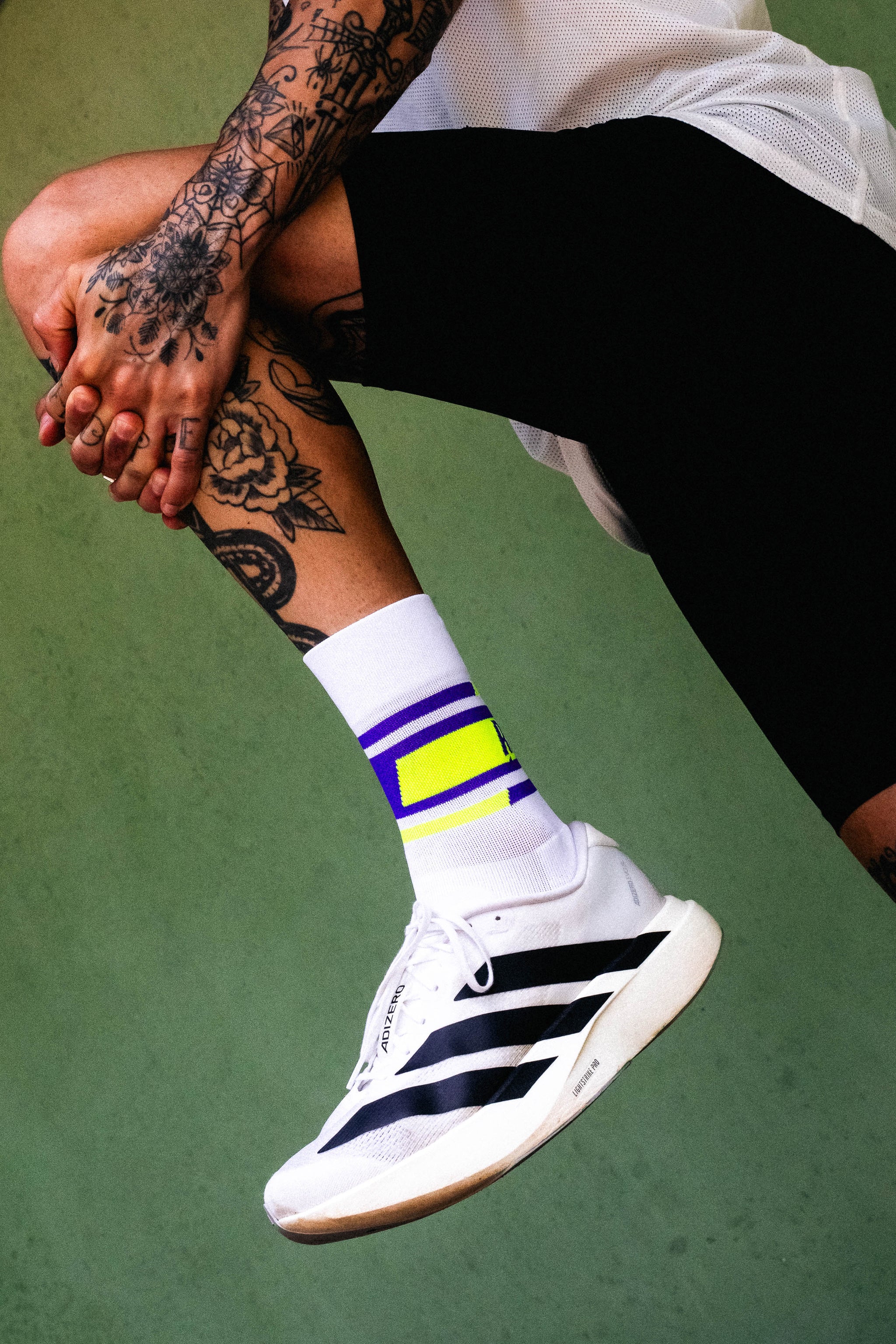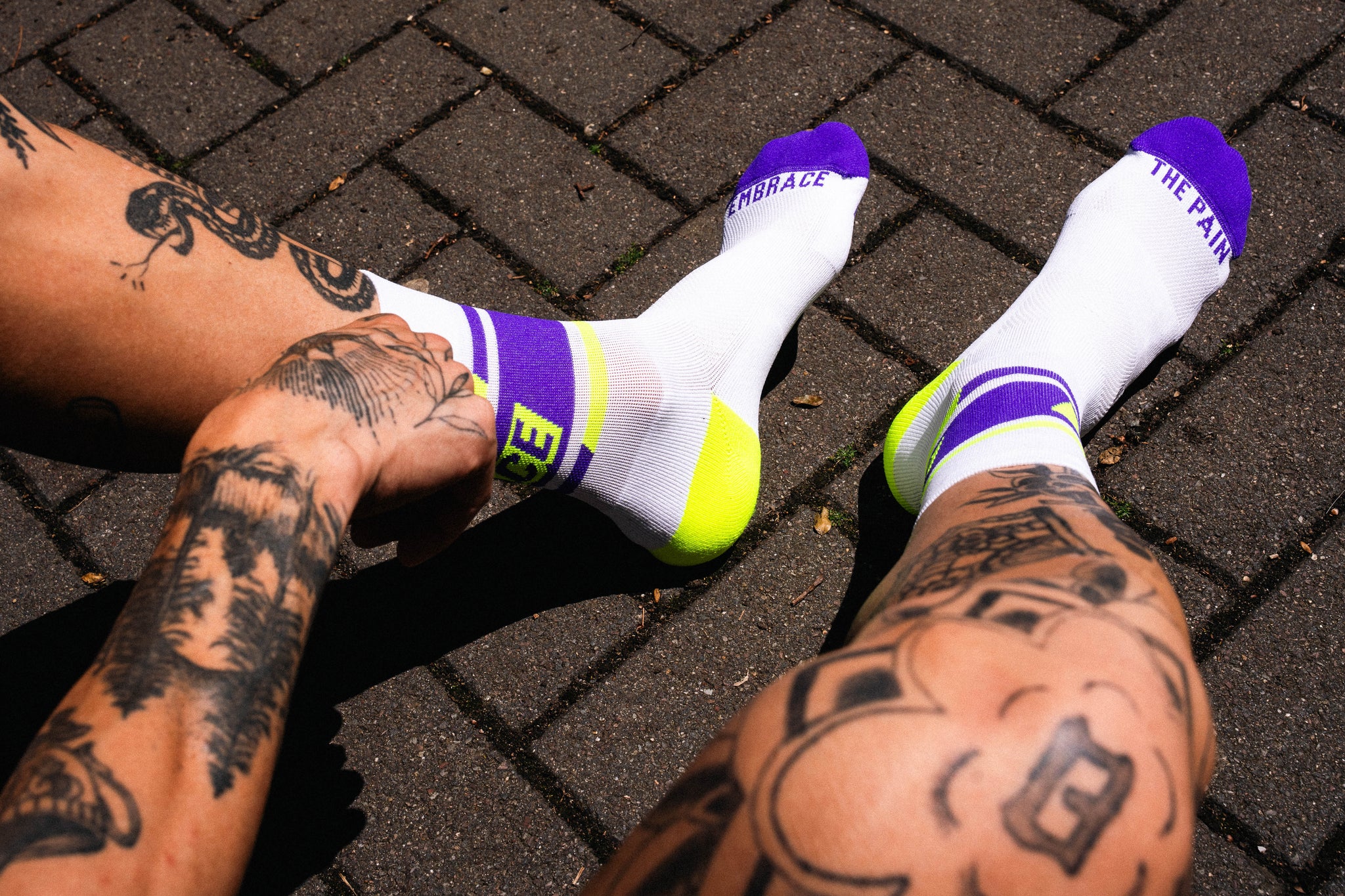 襪口與腳背的字樣,時刻提醒你——堅持、享受、全力以赴。