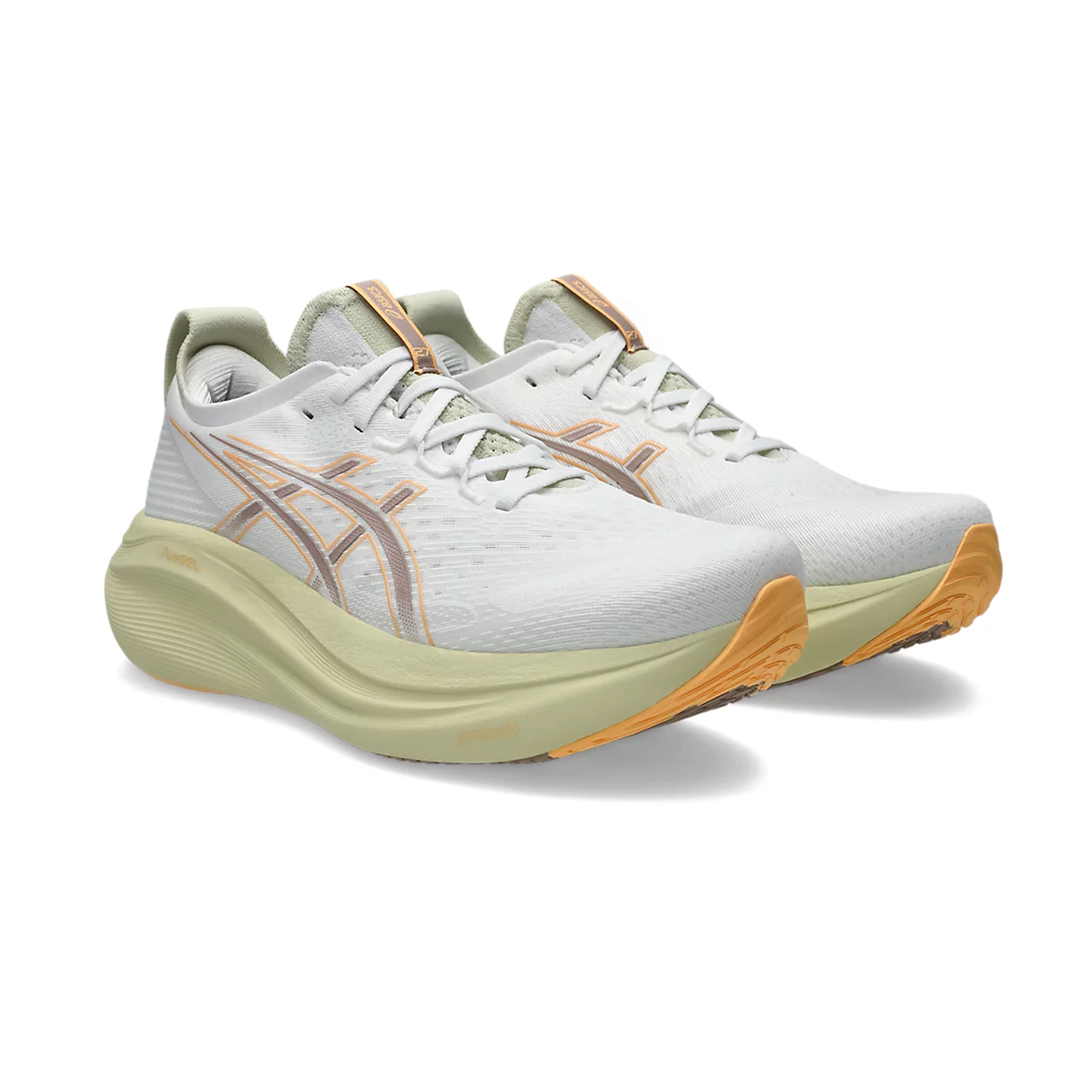 搶先評價 “(福利品)ASICS GEL-NIMBUS 27(2E寬楦) 白/杏色底 男”