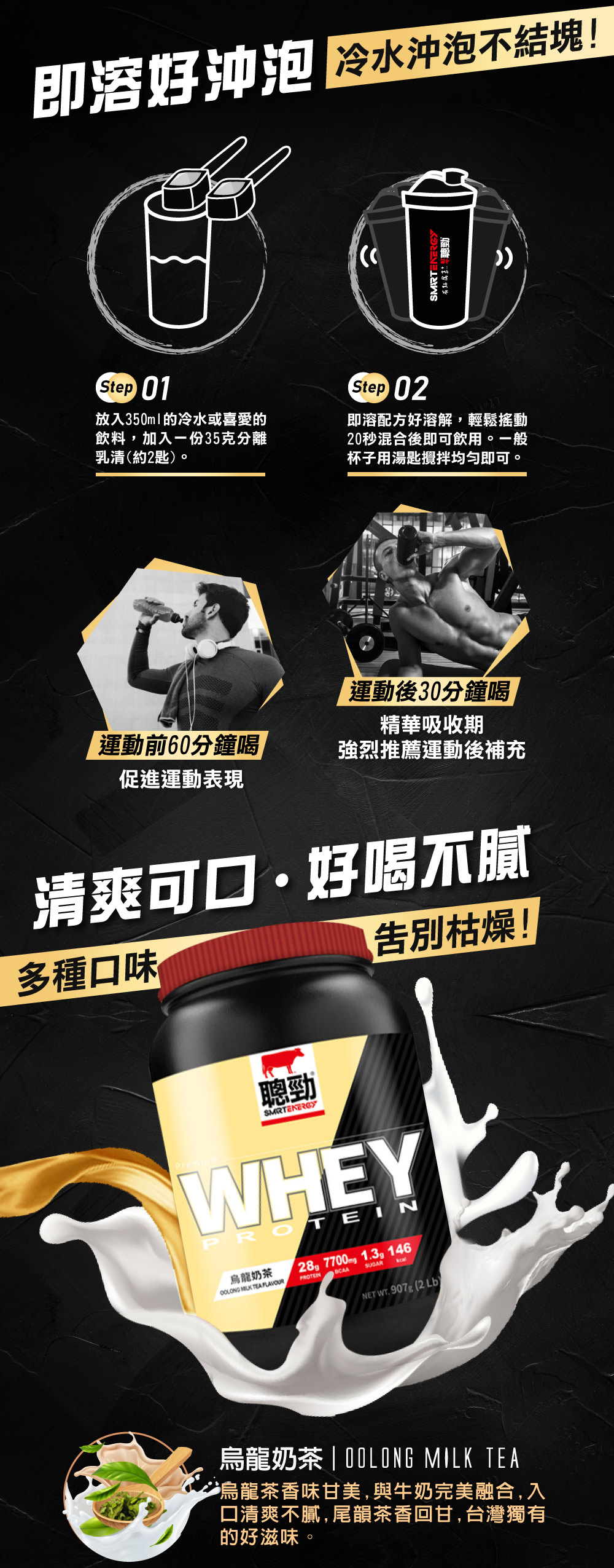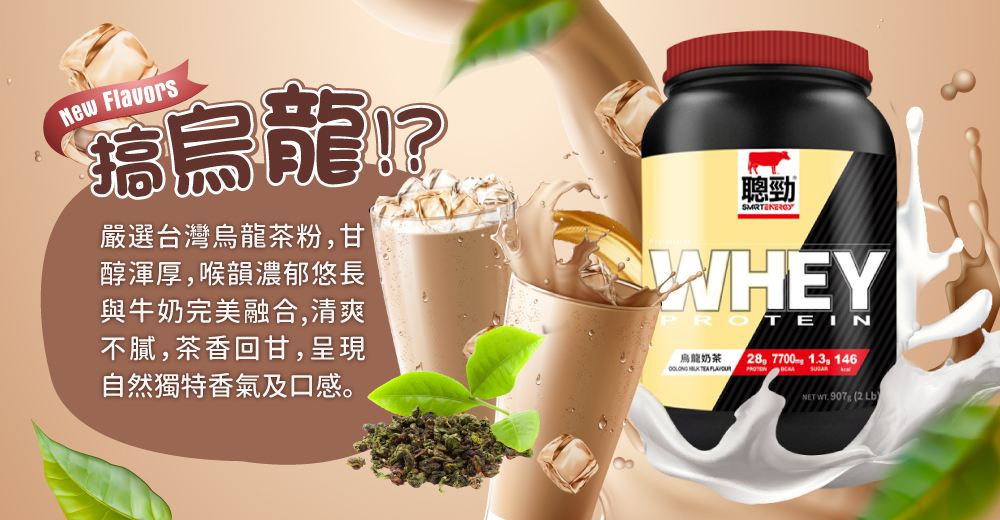 即溶濃縮乳清蛋白(濃縮乳清蛋白、葵花卵磷脂) 、烏龍茶粉、烏龍茶香料葡萄糖、複方香料含丙 二醇、乙醇酒精、純水、二氧化矽、即溶支鏈 胺基酸L白胺酸、L異白胺酸、L纈胺酸、大豆卵 磷脂 、關華豆膠、食鹽、醋磺內酯鉀甜味劑 、 蔗糖素甜味劑。