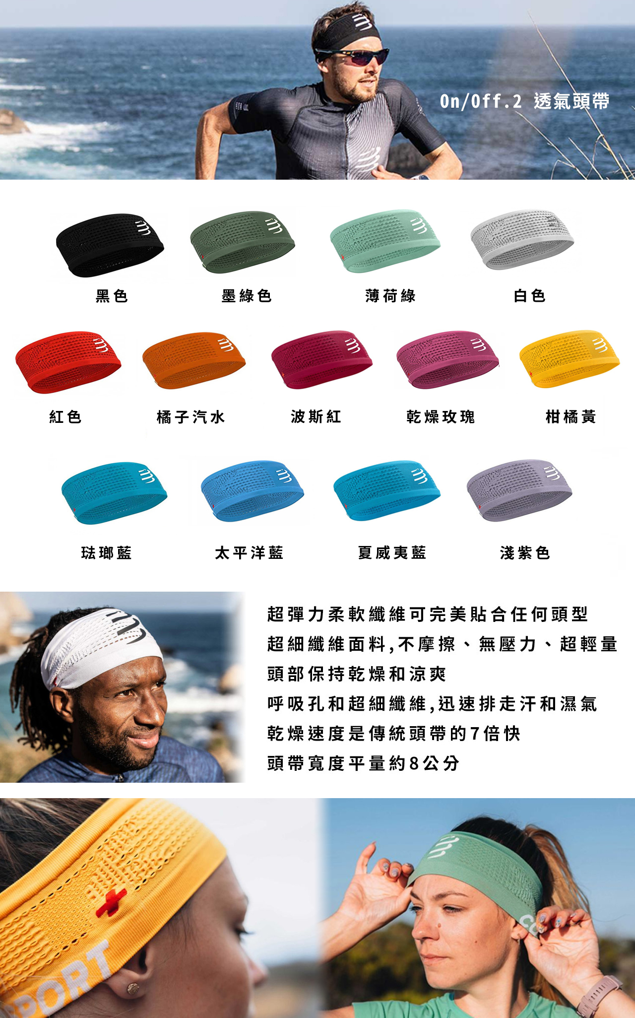 ★ 呼吸孔和超細纖維能迅速排走汗水和濕氣,使頭部保持乾燥和涼爽