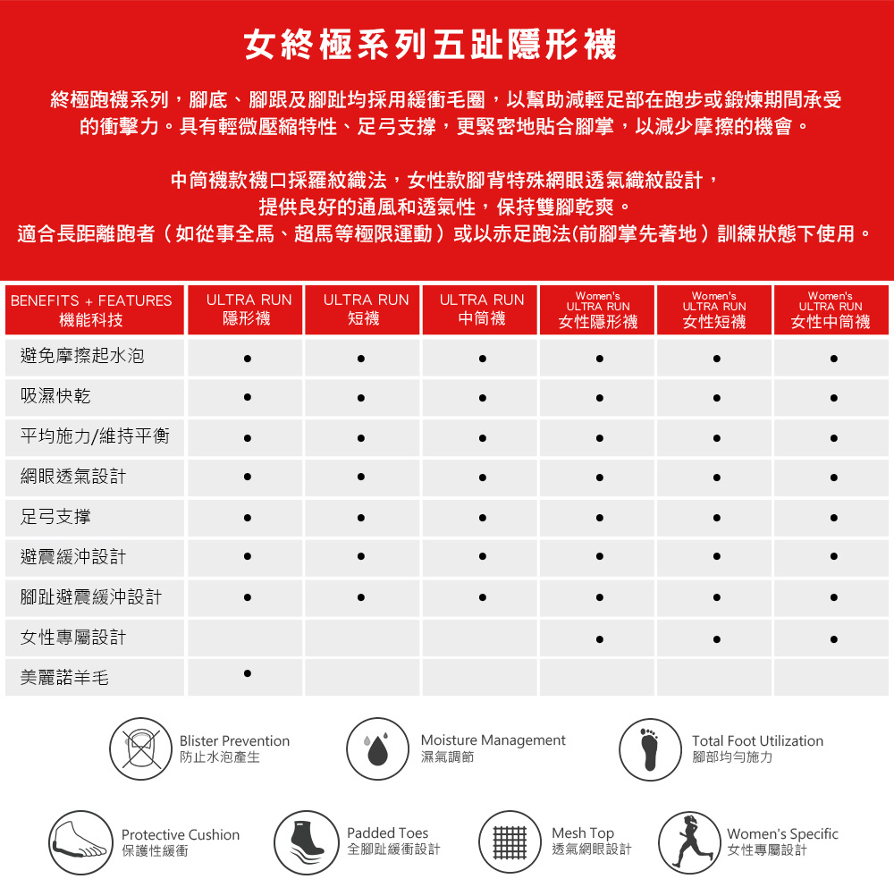 ★ 五趾分離設計,減少趾縫間皮膚摩擦,避免水泡產生。