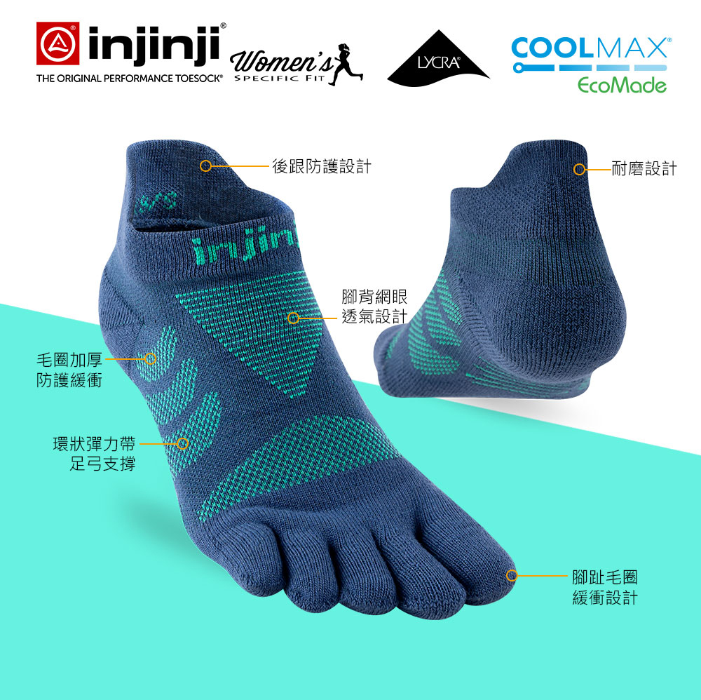 INJINJI Ultra Run終極系列五趾隱形襪 波塞頓藍 女