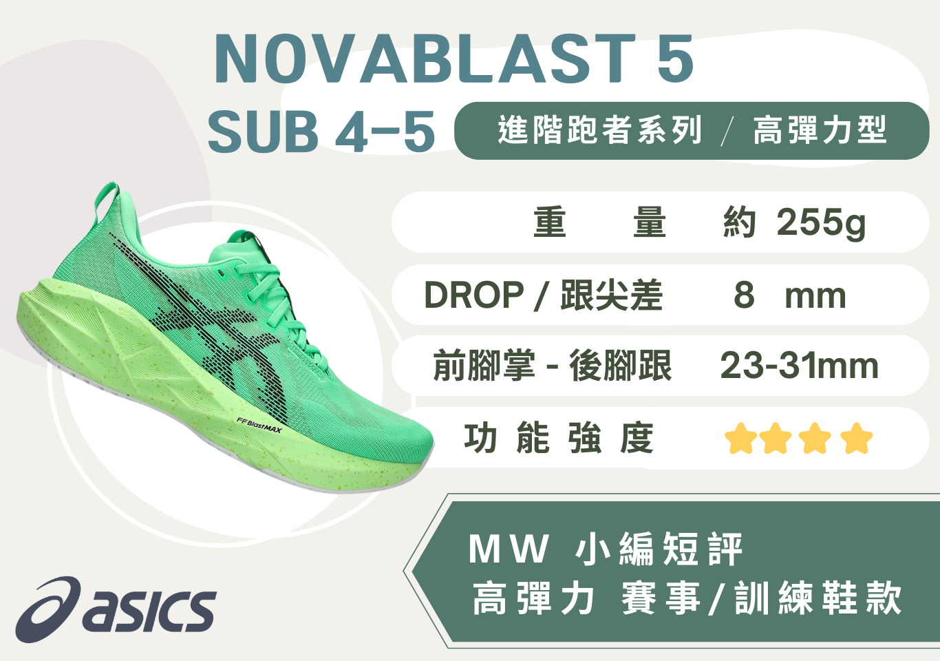 ★ 使用FF BLAST MAX中底材質,並結合獨特的幾何結構,提供充滿動能的回彈腳感。