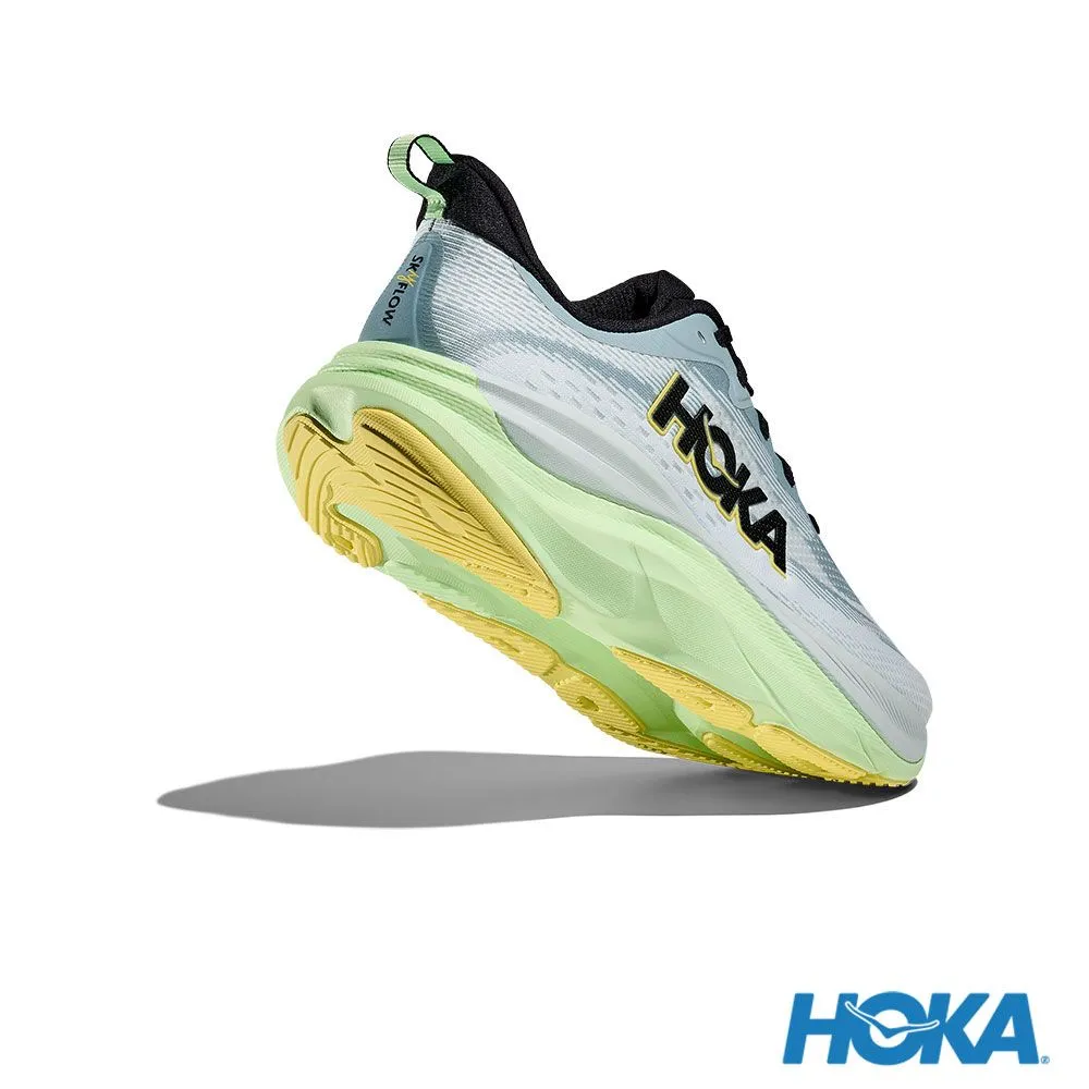 由頂級緩震鞋款Skyward X延伸的極舒適、回彈腳感,每一步帶來的愉悅感受,讓續航力再提升!中底採用「超臨界發泡 EVA」 提供舒適及彈性。以後跟支撐為主設計的Active Foot Frame™ 杯狀結構提供高度保護,搭配以前掌為重心的滾動設計,可讓跑者毫不費力的邁出步伐。