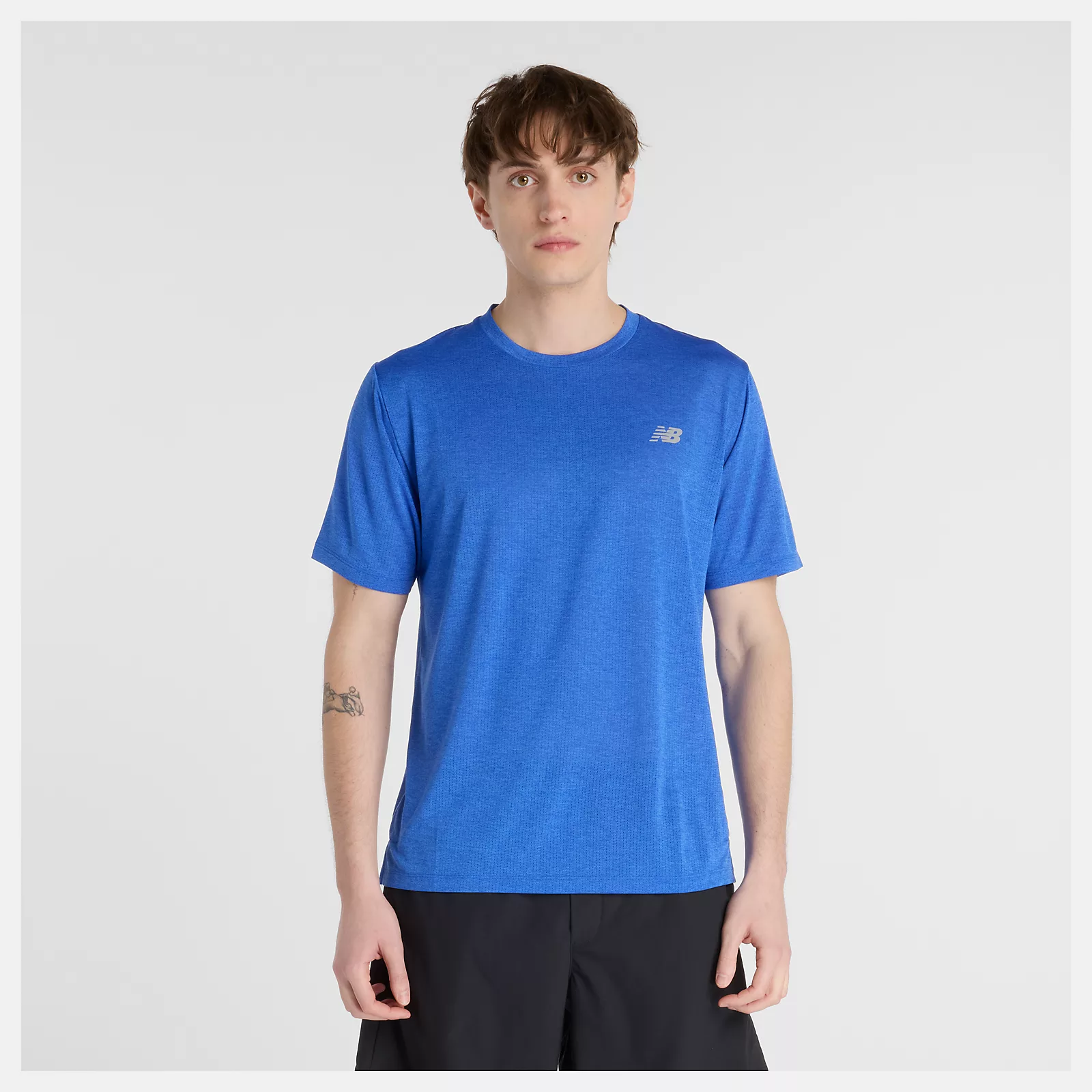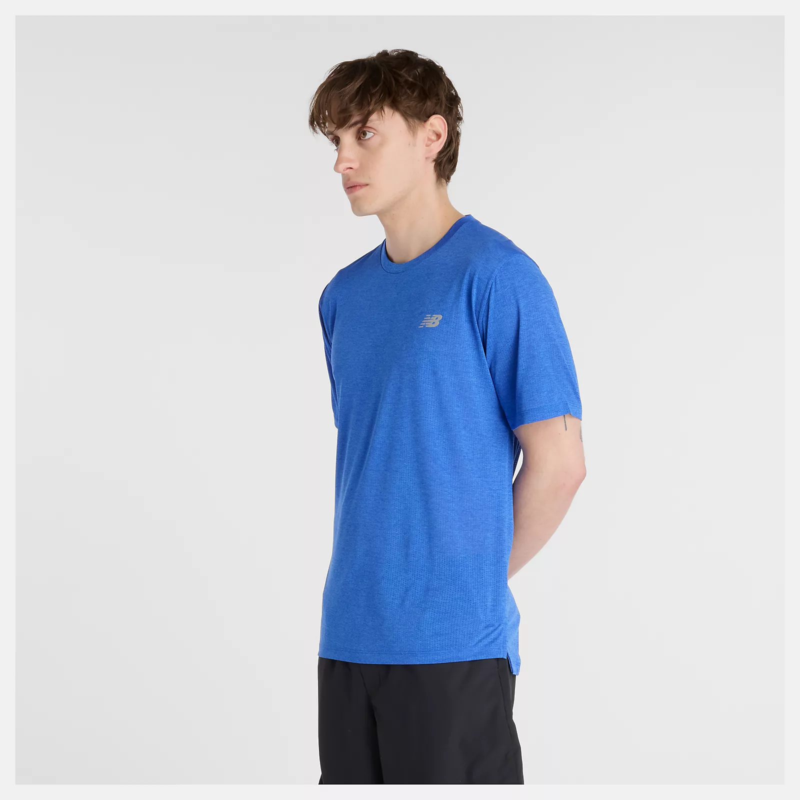 New Balance 慢跑短上衣 藍 男