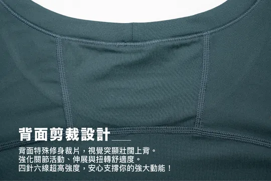 全新的縫線剪裁設計,依照人體上半身關節所需要的所有活動範圍,創造出非常低的拉扯牽引感。