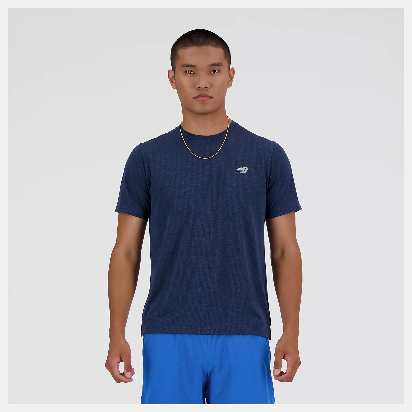 New Balance 路跑短袖上衣 深藍 男