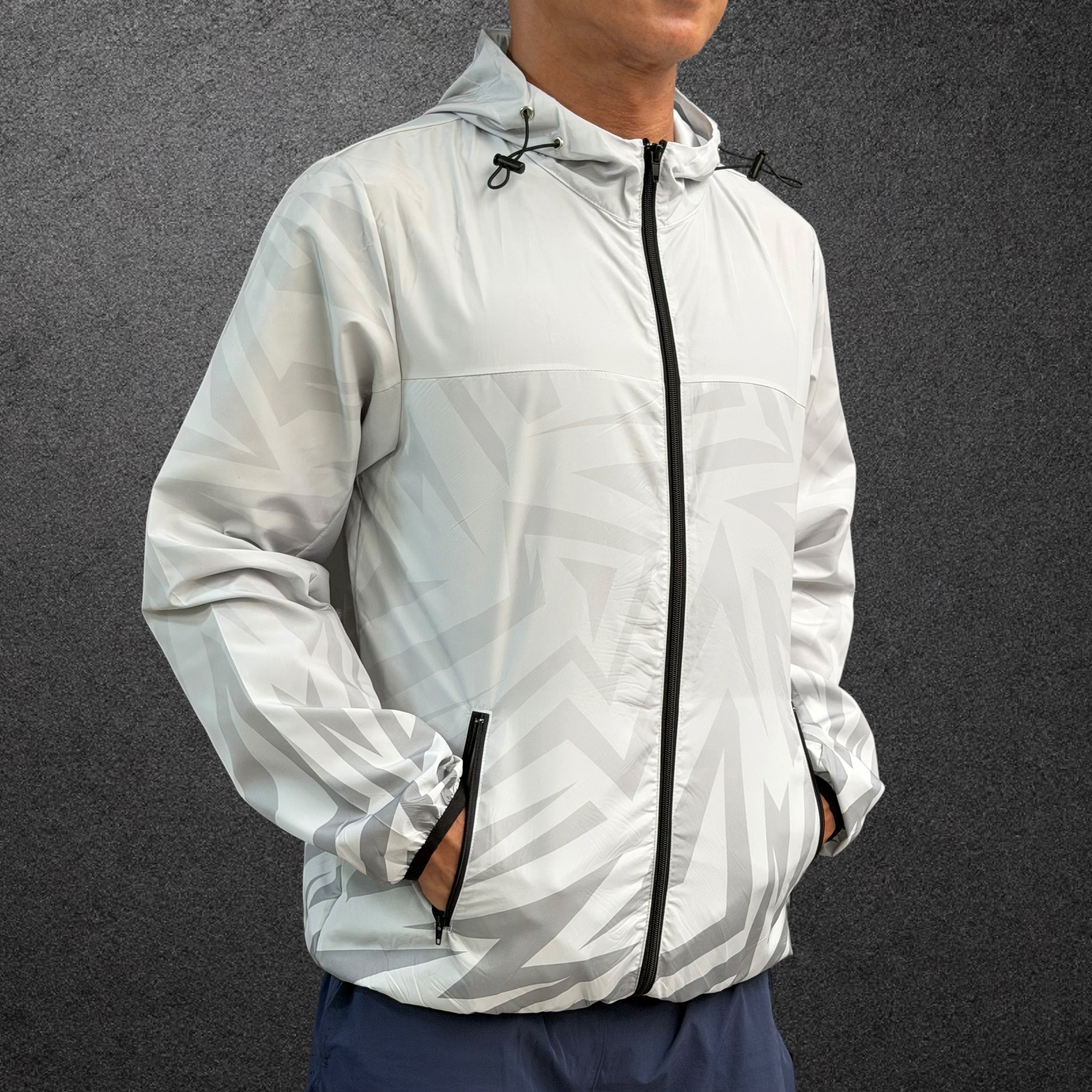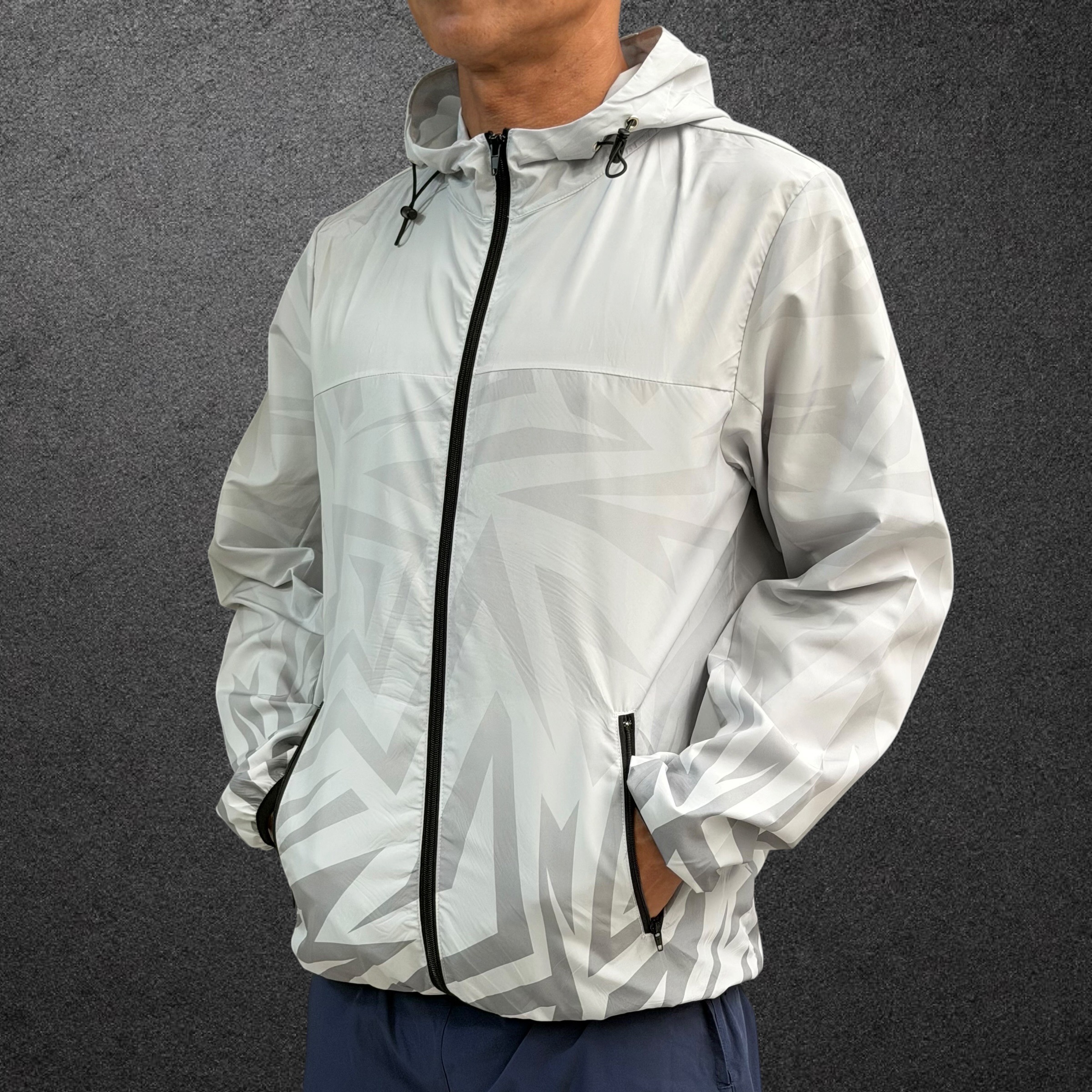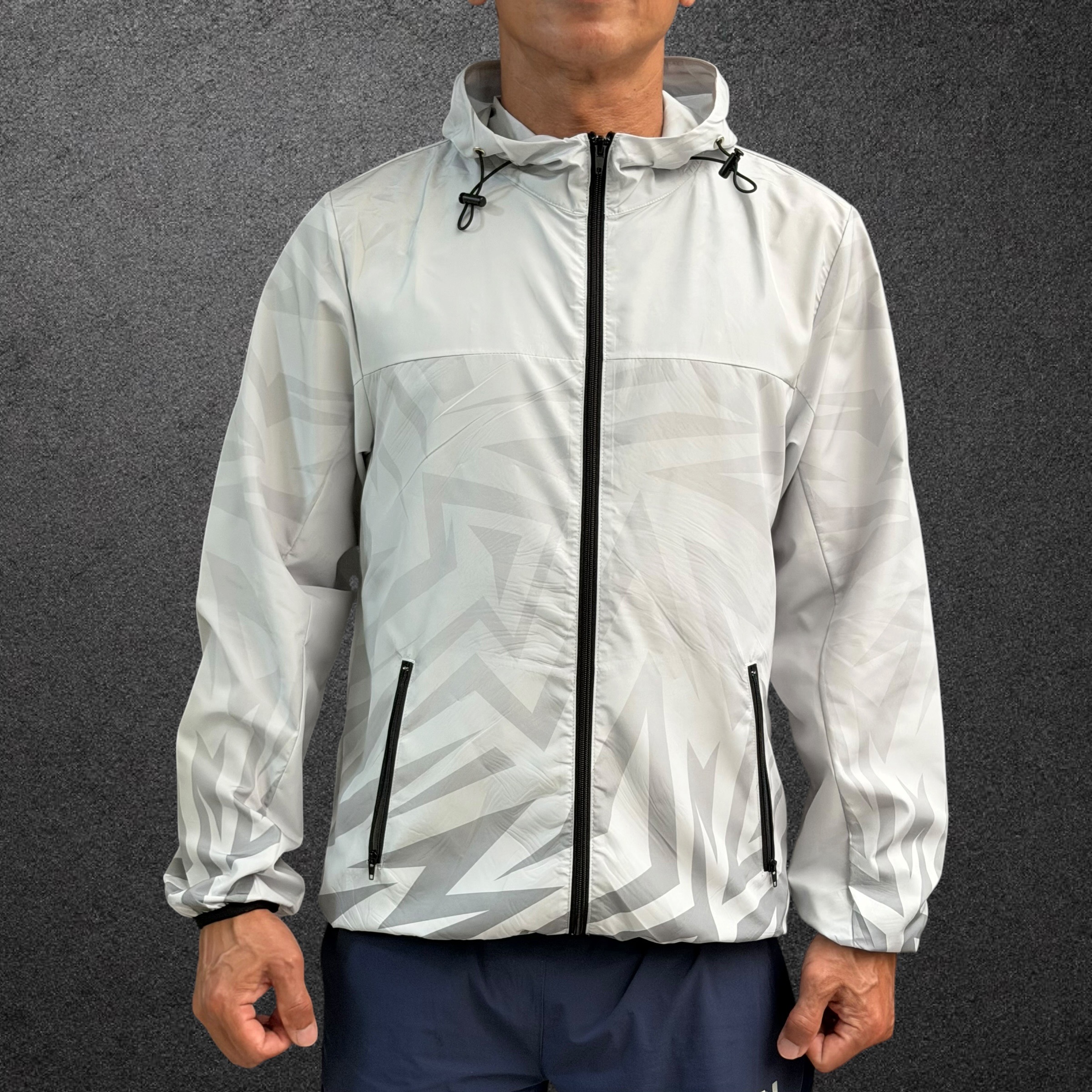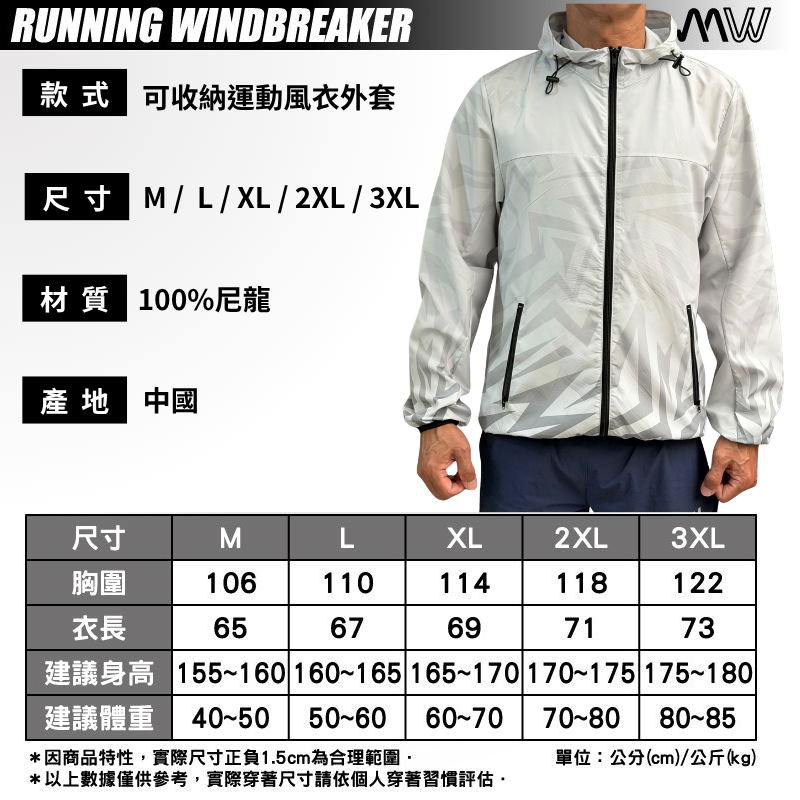 MW 可收納運動風衣外套 灰白/黑紋 男