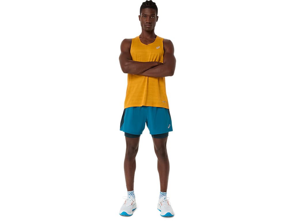 ASICS ROAD 2IN1 5吋短褲 綠 男