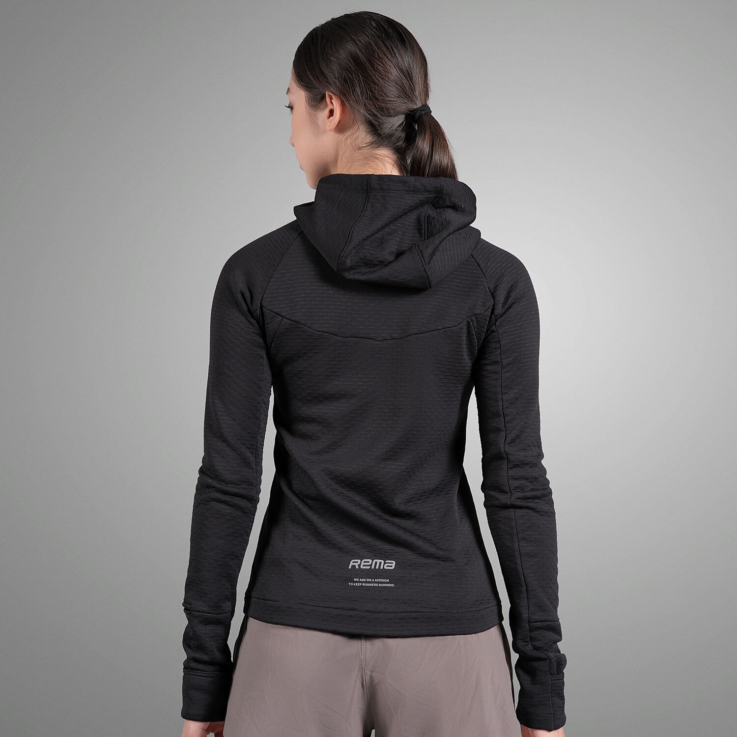 拇指孔設計讓袖口在運動中維持固定位置,避免因擺臂造成袖長上滑,