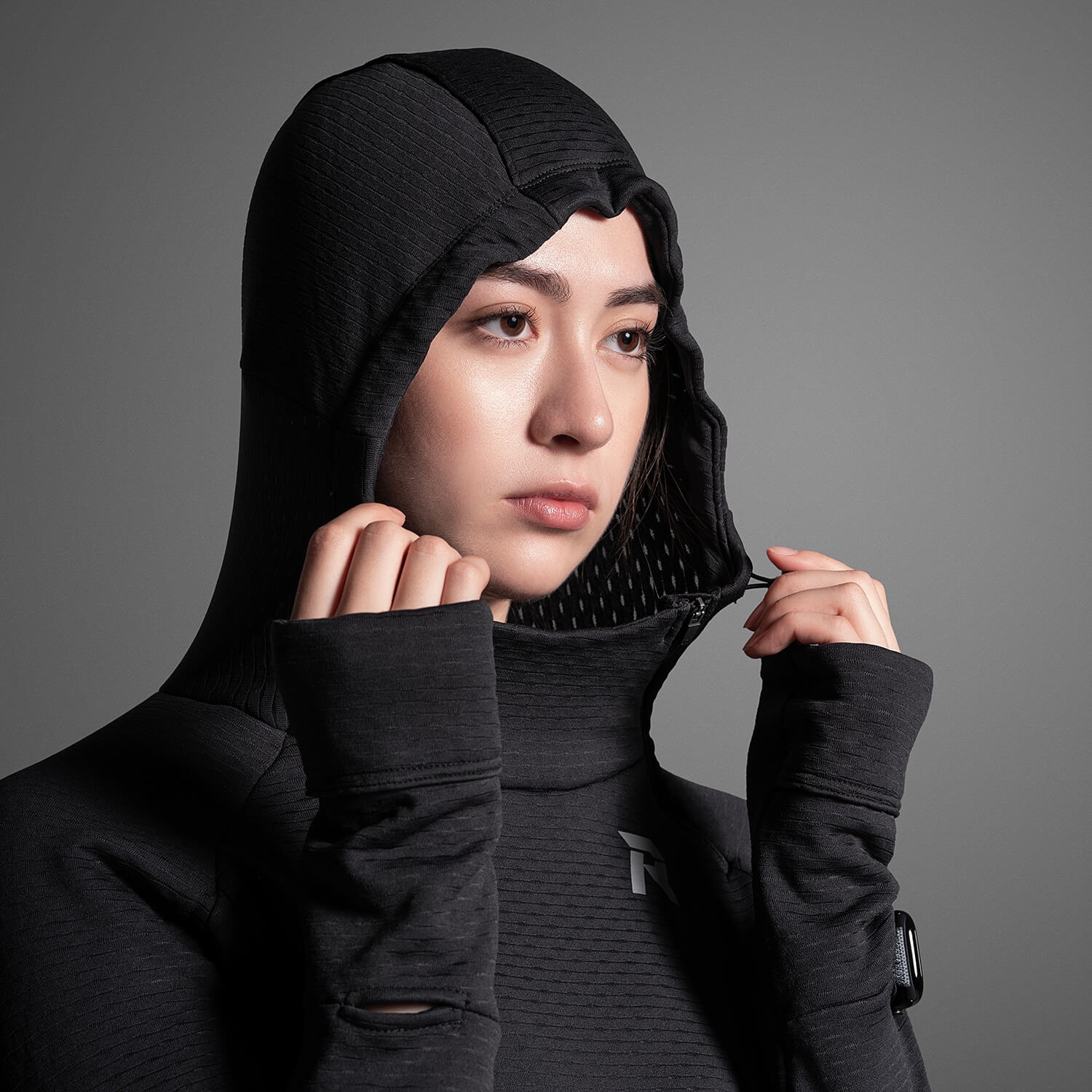 這樣的設計能在低溫或迎風時減少熱能流失,同時在運動強度提高時,讓多餘熱氣快速排出。