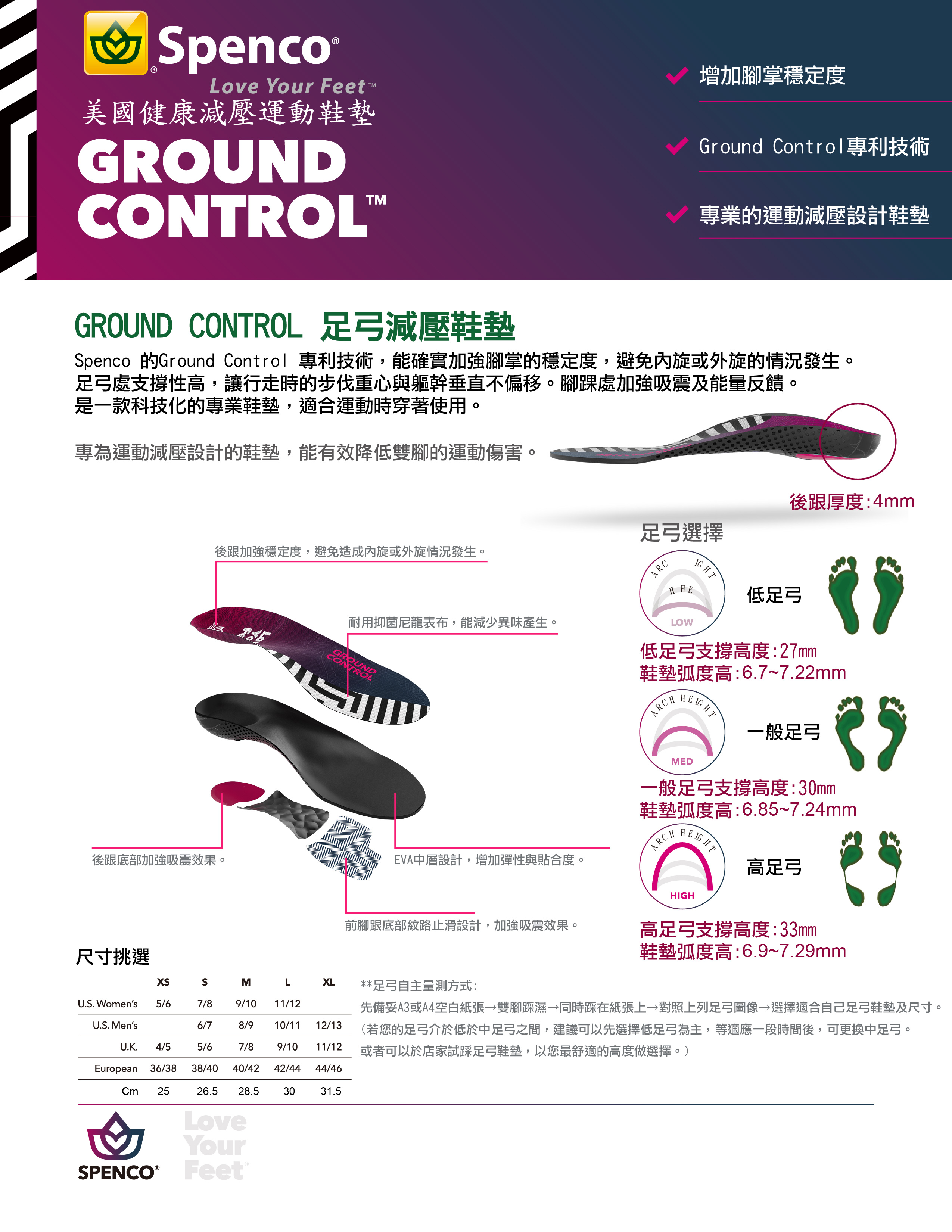 Spenco 低足弓減壓鞋墊
