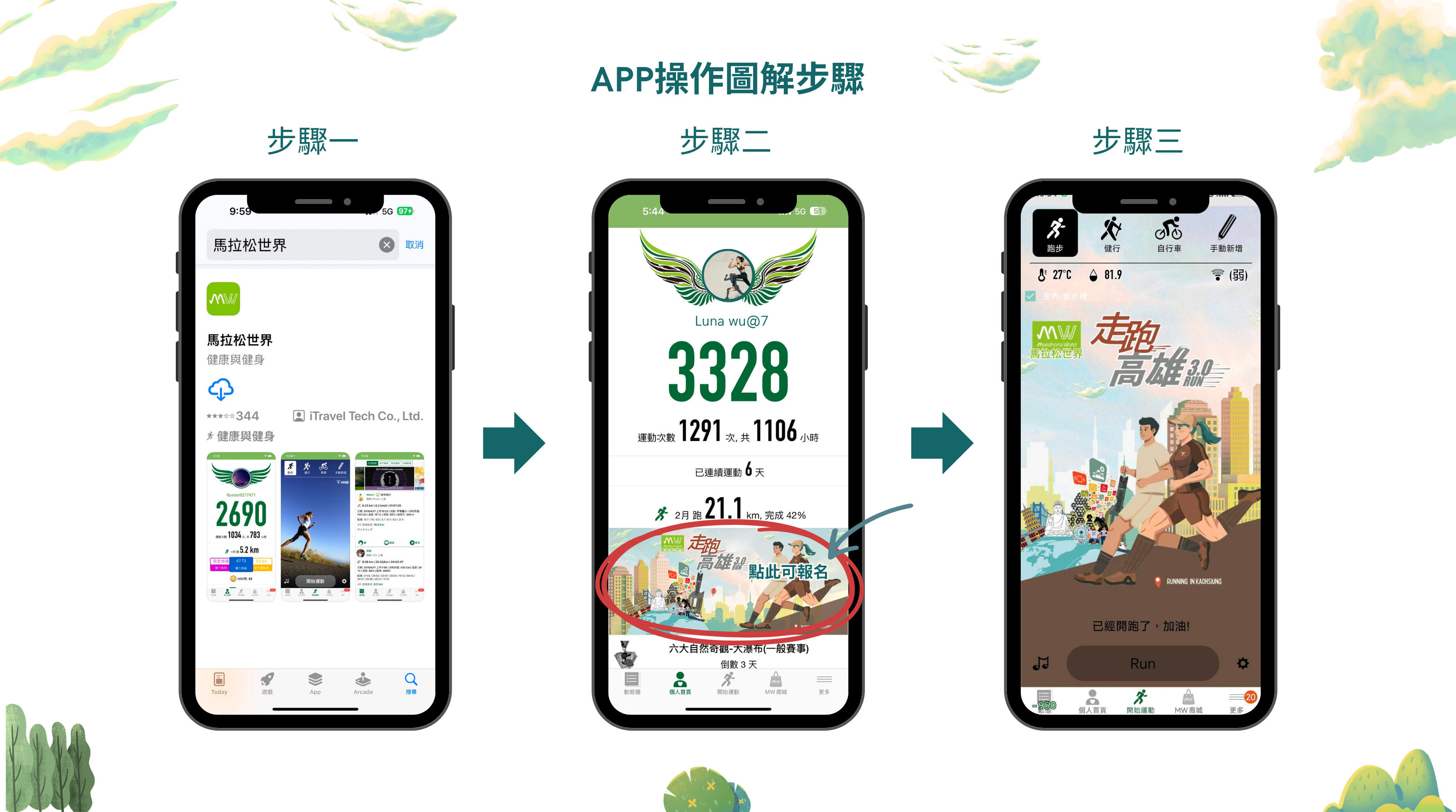 下載馬拉松世界 App 並登入帳號後,可於「高雄智慧走跑 3.0 活動專區」報名活動。