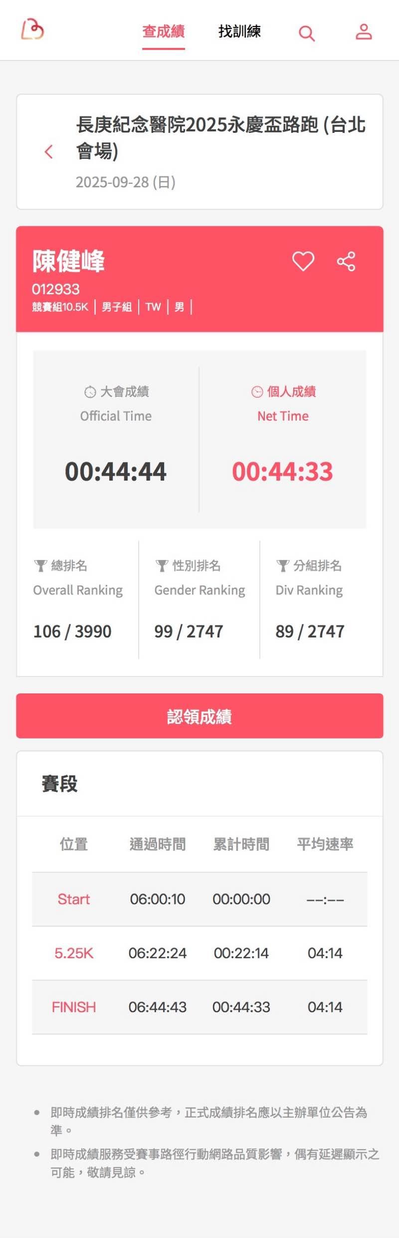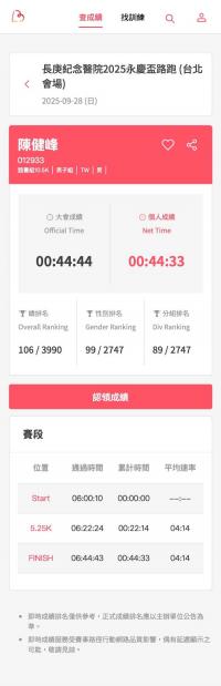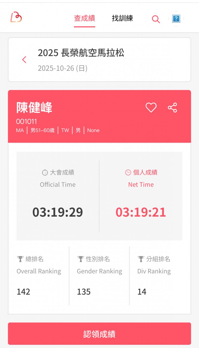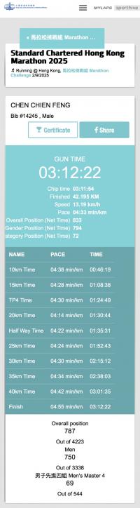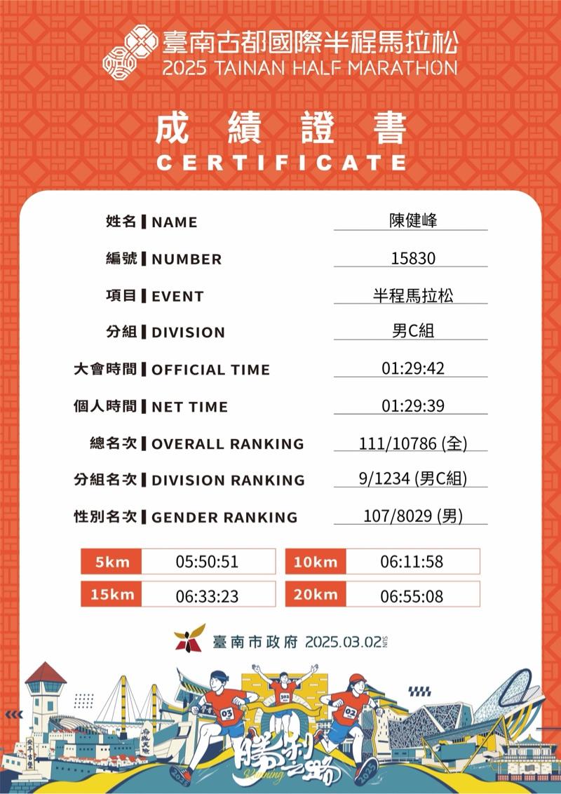 2025/12/21 Chen Chien-Feng 完成了第 60 馬! - 2025臺北馬拉松