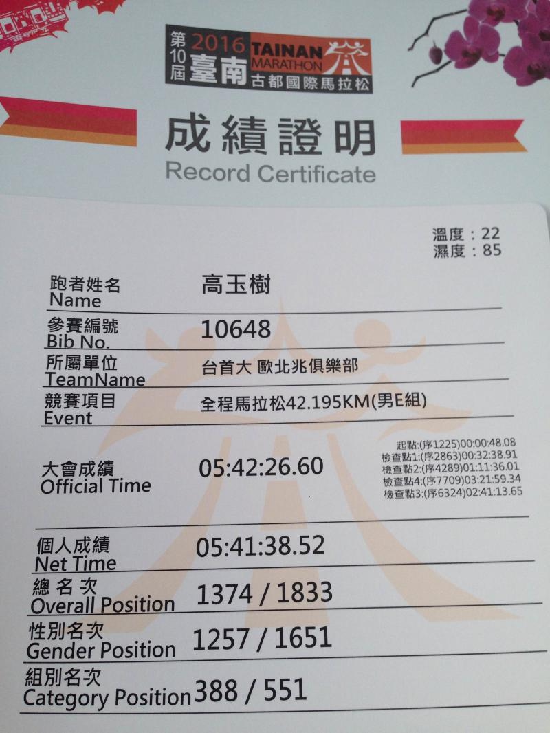 YU Shu Kao 已連續運動