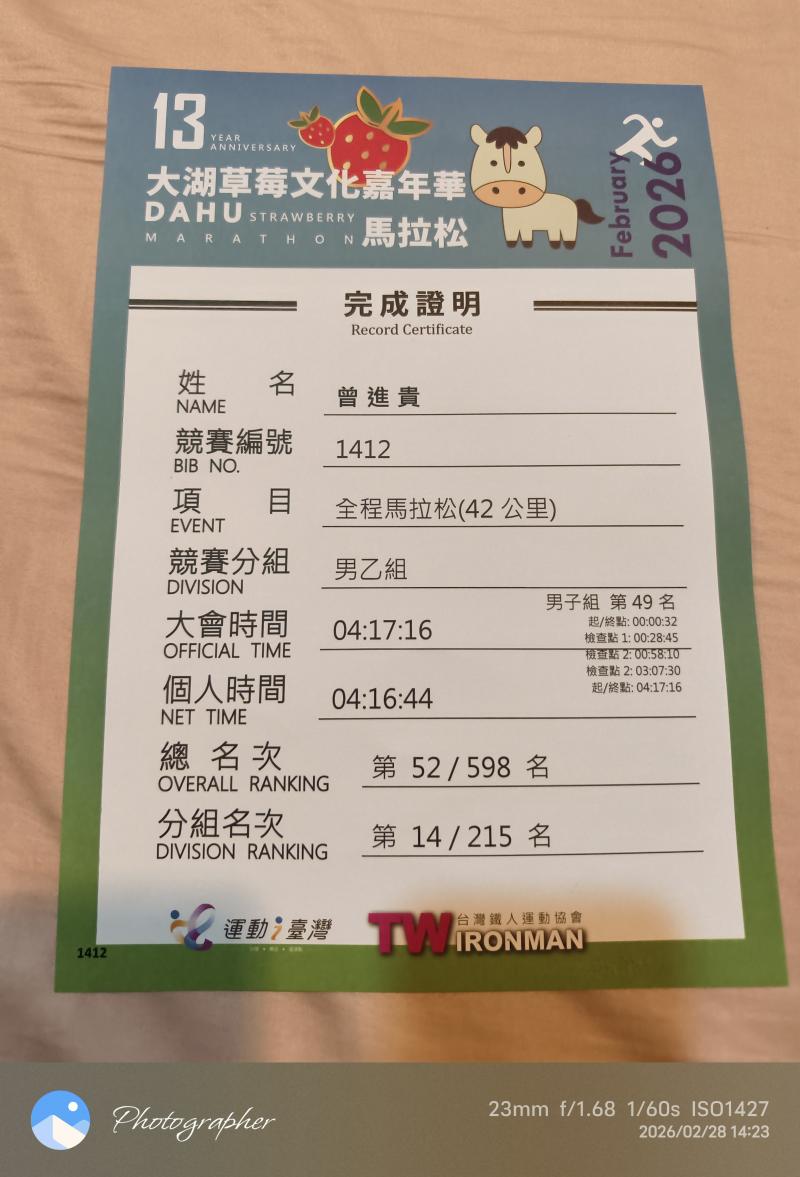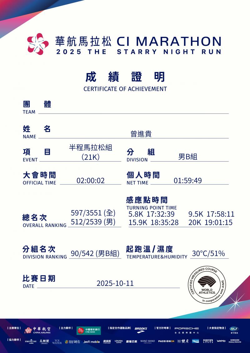 曾進貴 的運動曆