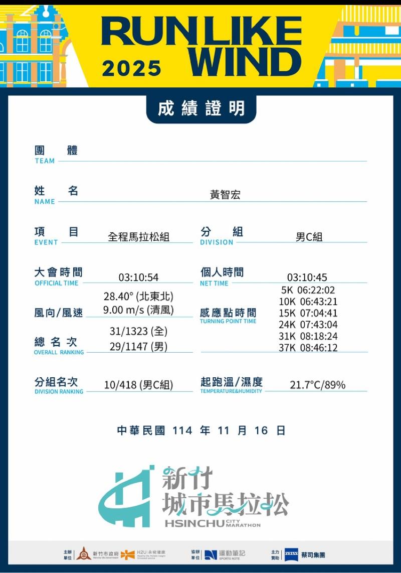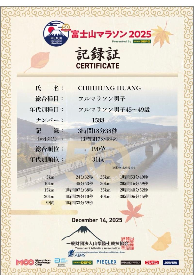 黃智宏 的運動日誌(2025年12月)
