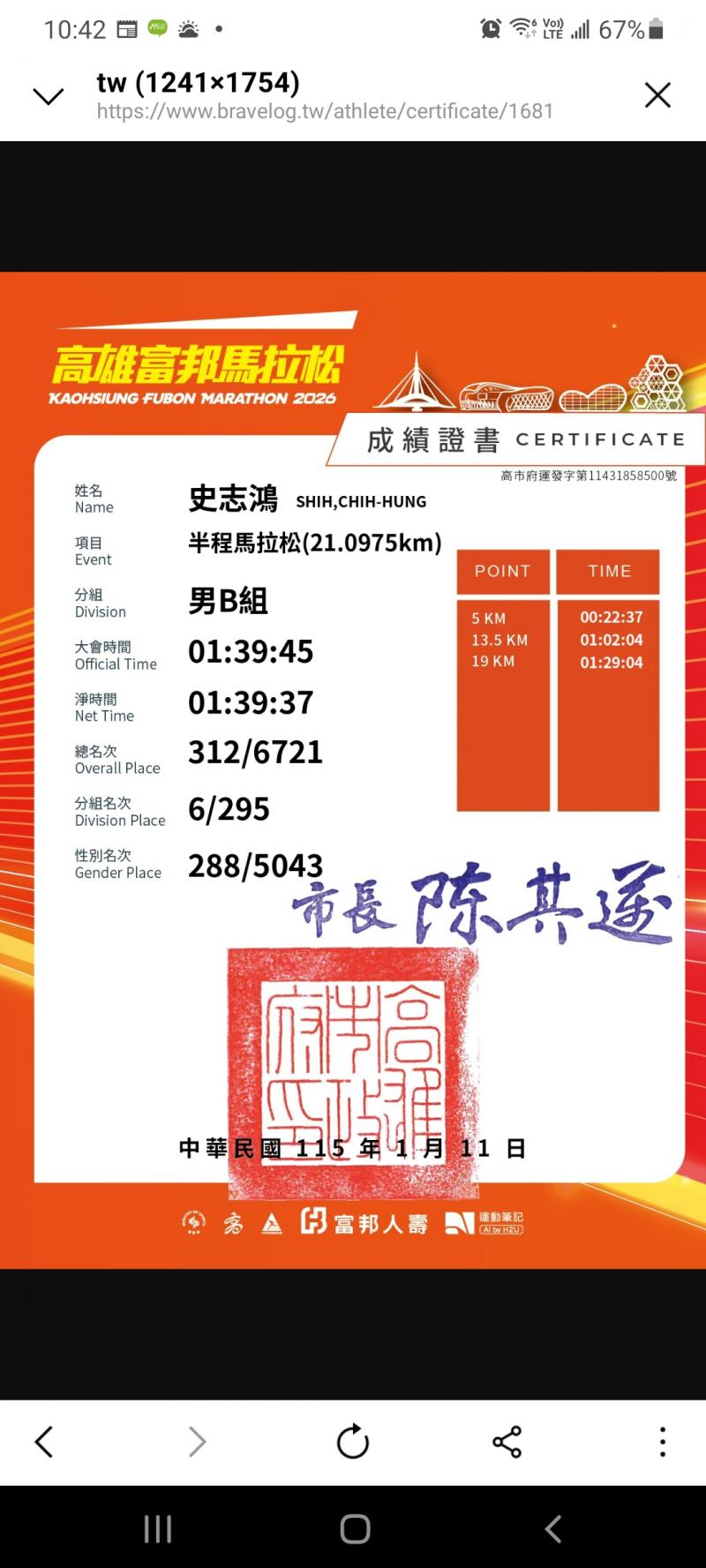 史志鴻 的運動曆