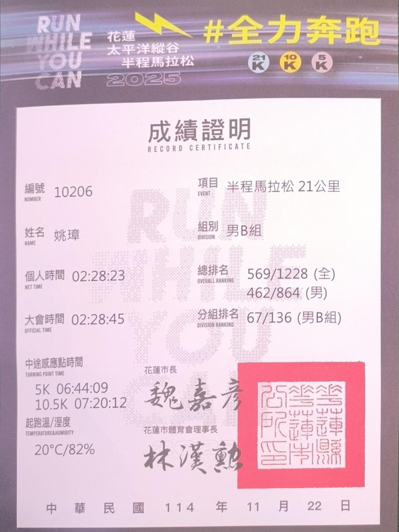 姚璋 已連續運動