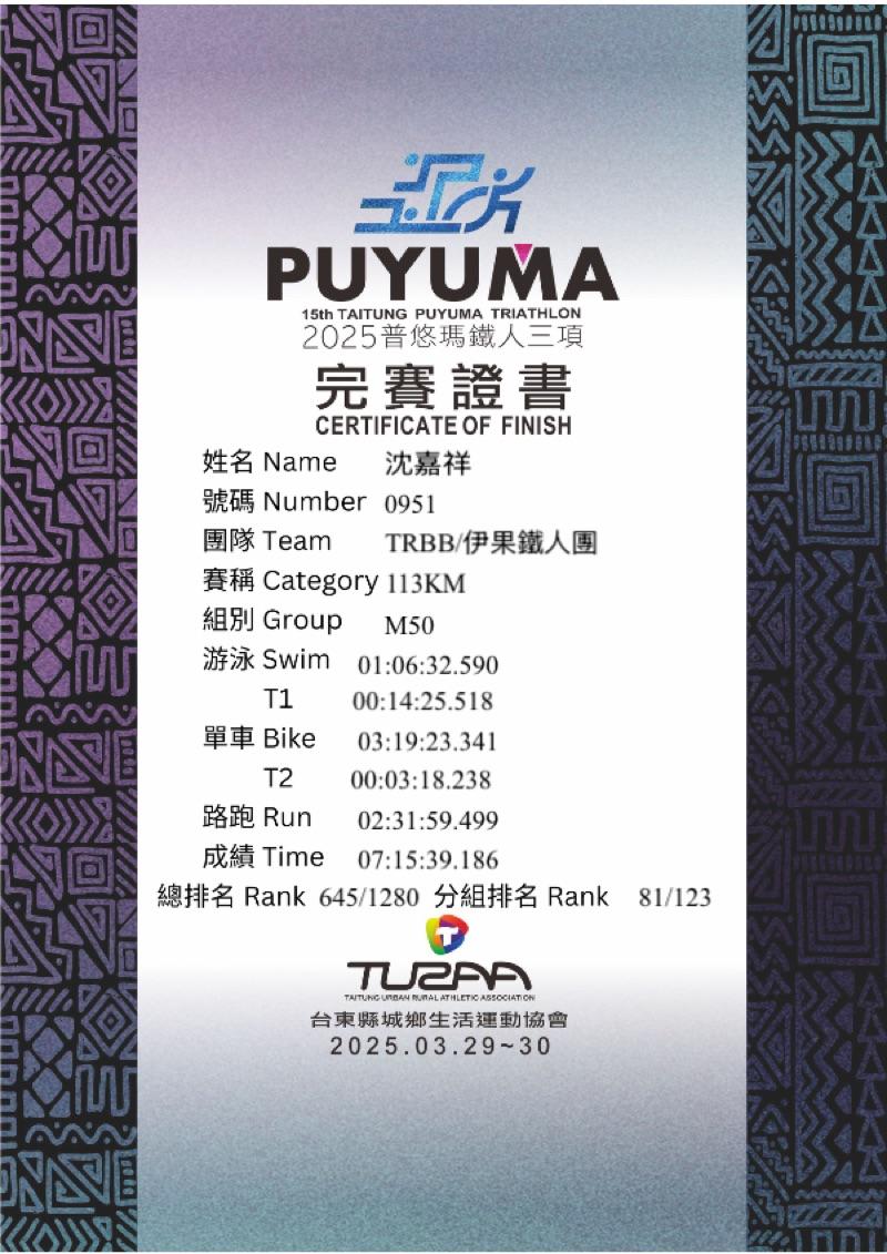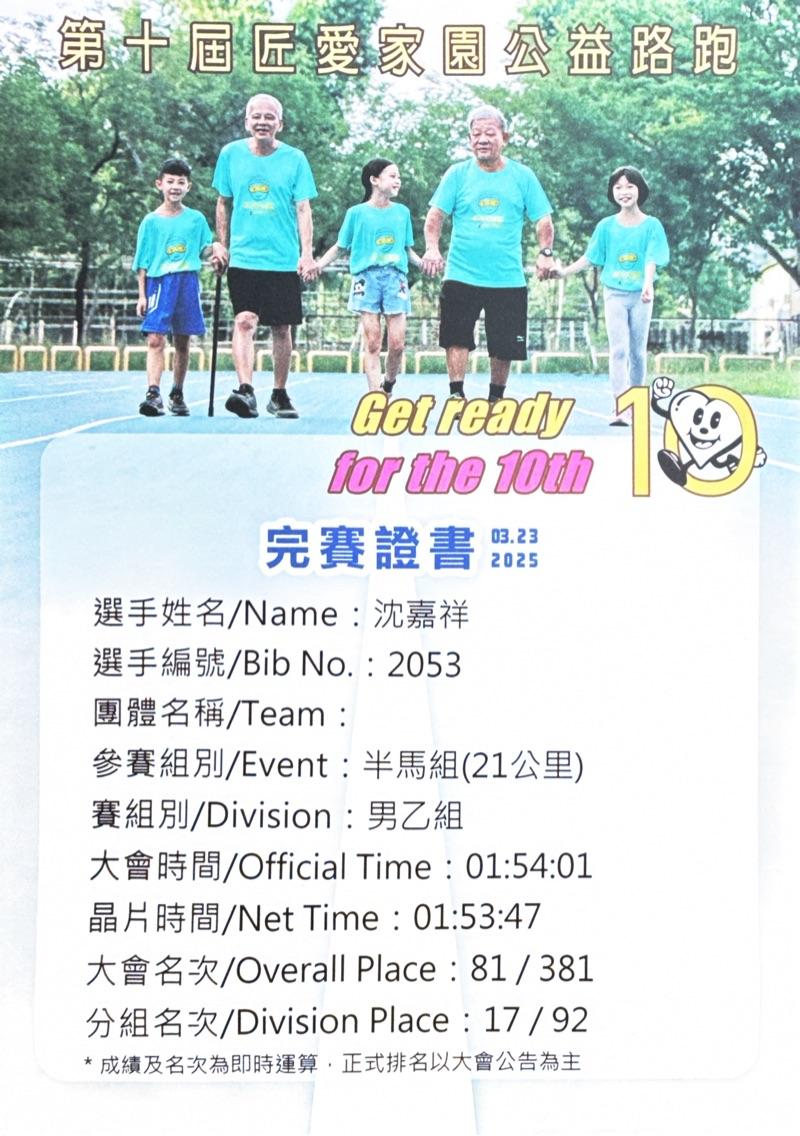 沈嘉祥 的運動曆