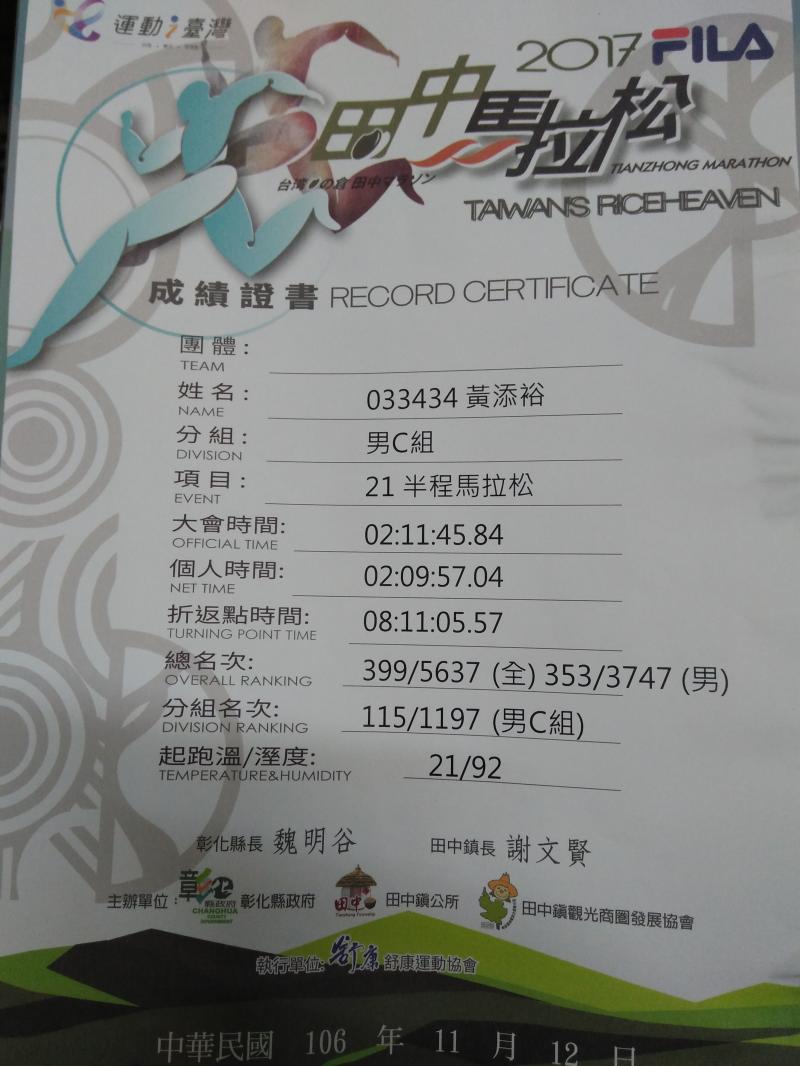 黃添裕 的運動曆