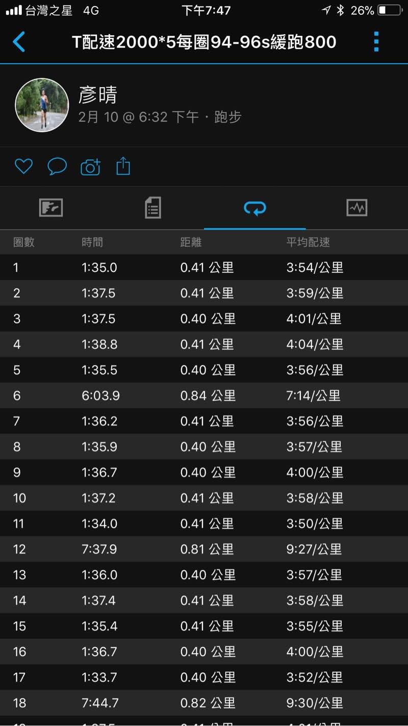 彥~晴 的運動日誌(2026年2月)