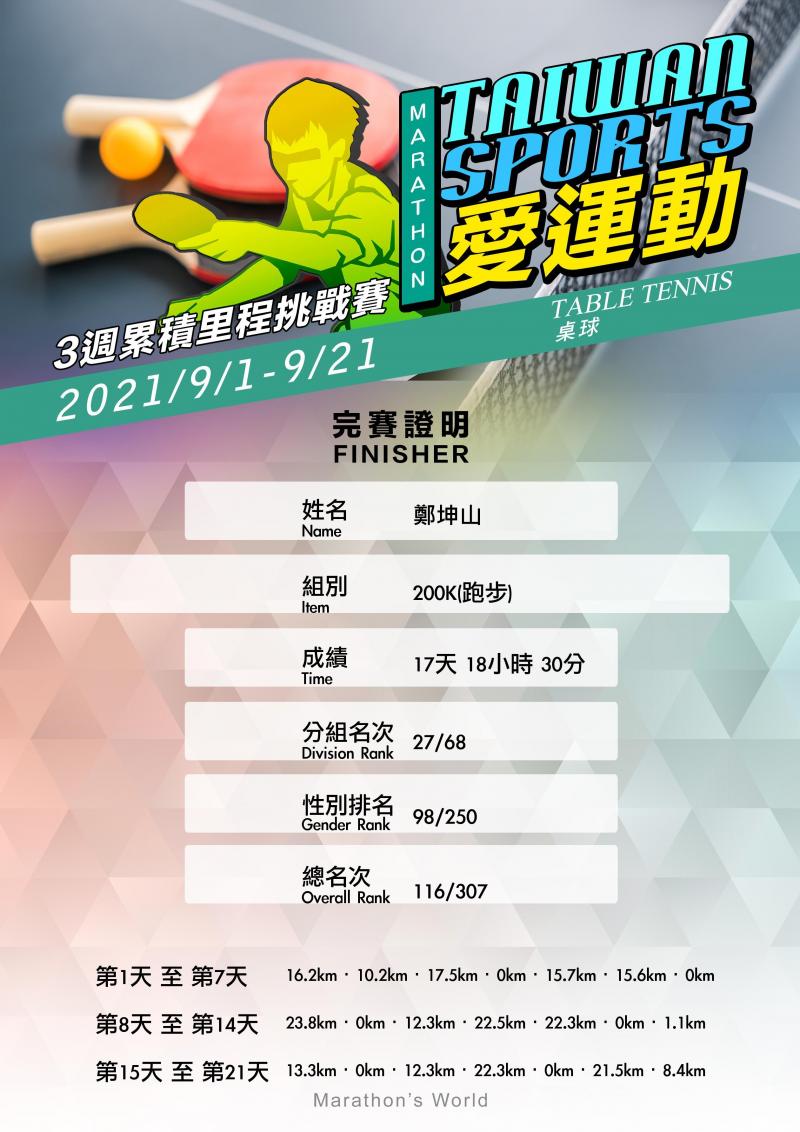 鄭坤山 已連續運動