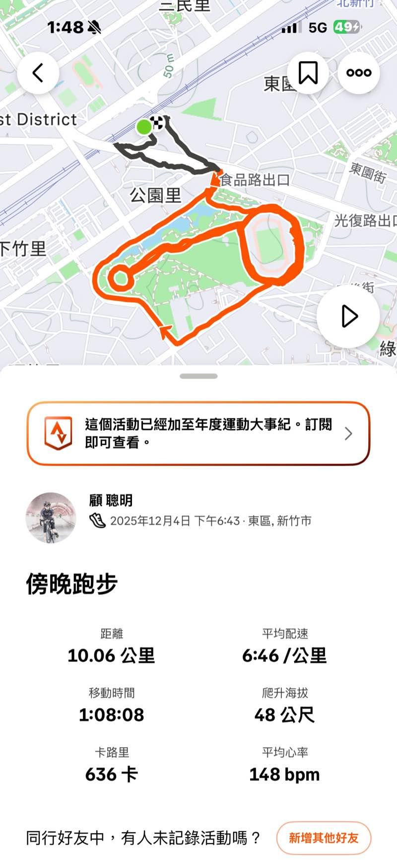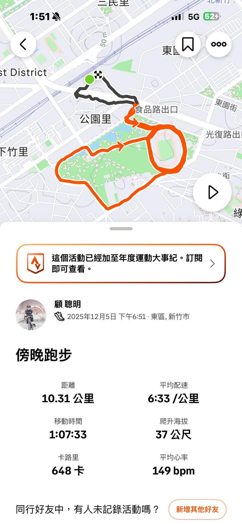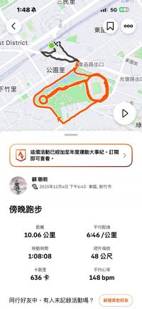 顧聰明 (錸德慢跑社) 的運動日誌(2025年12月)
