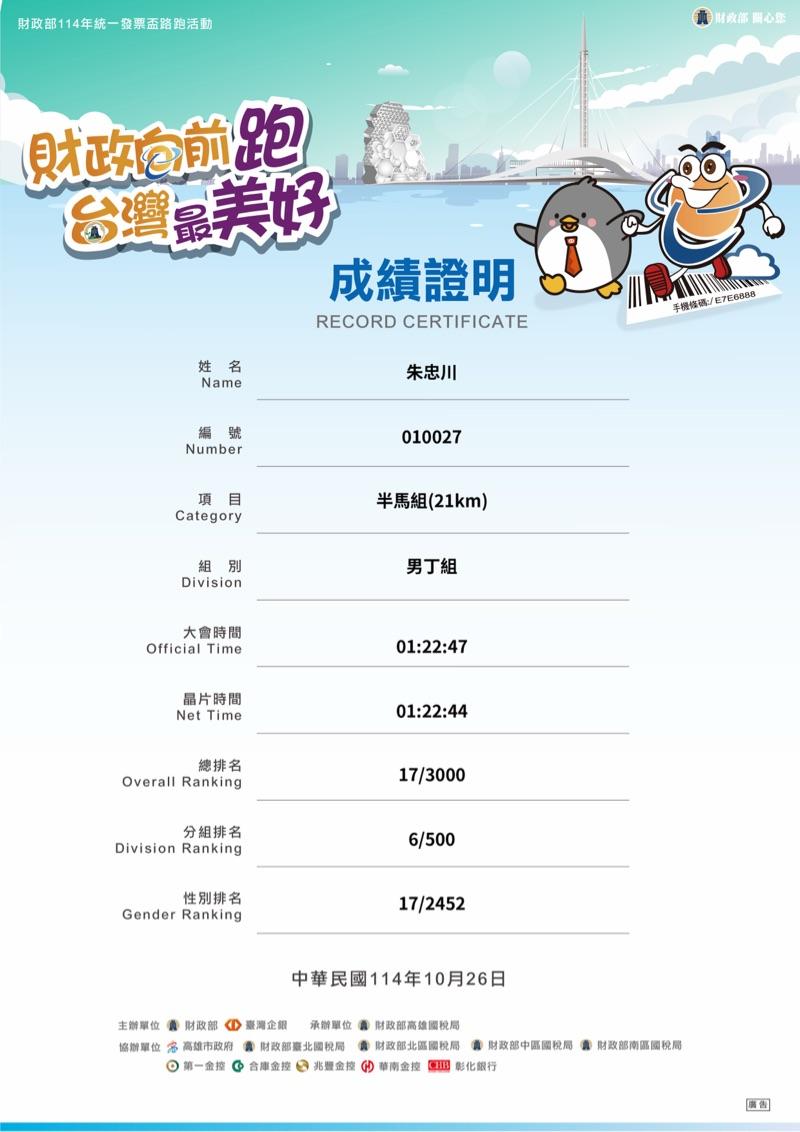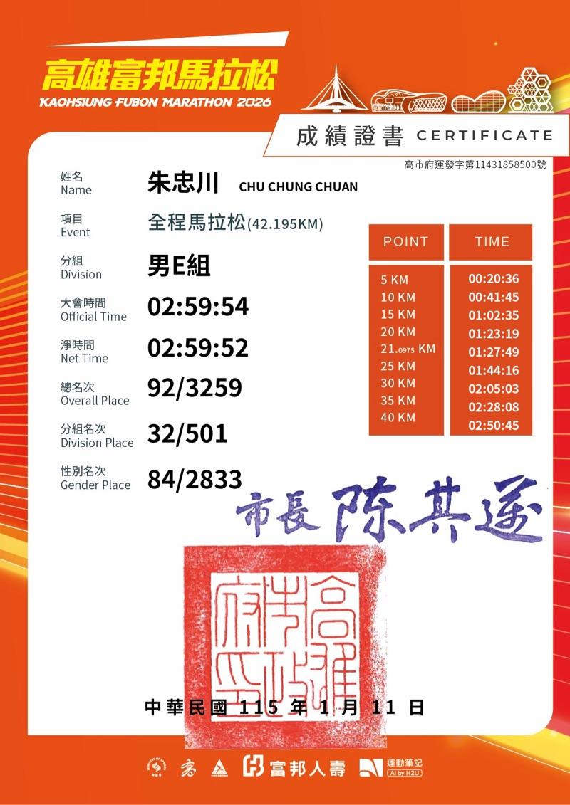 朱忠川 已連續運動