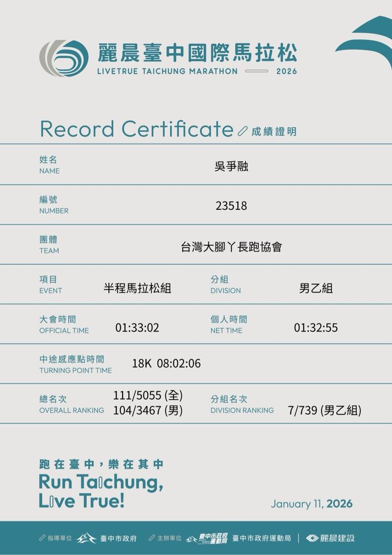 吳爭融 的運動曆