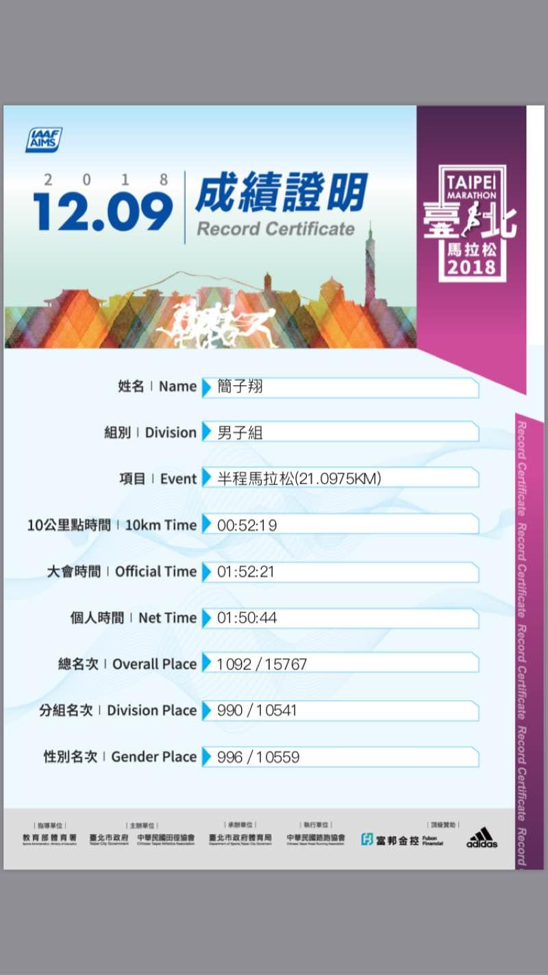簡子翔 的運動曆