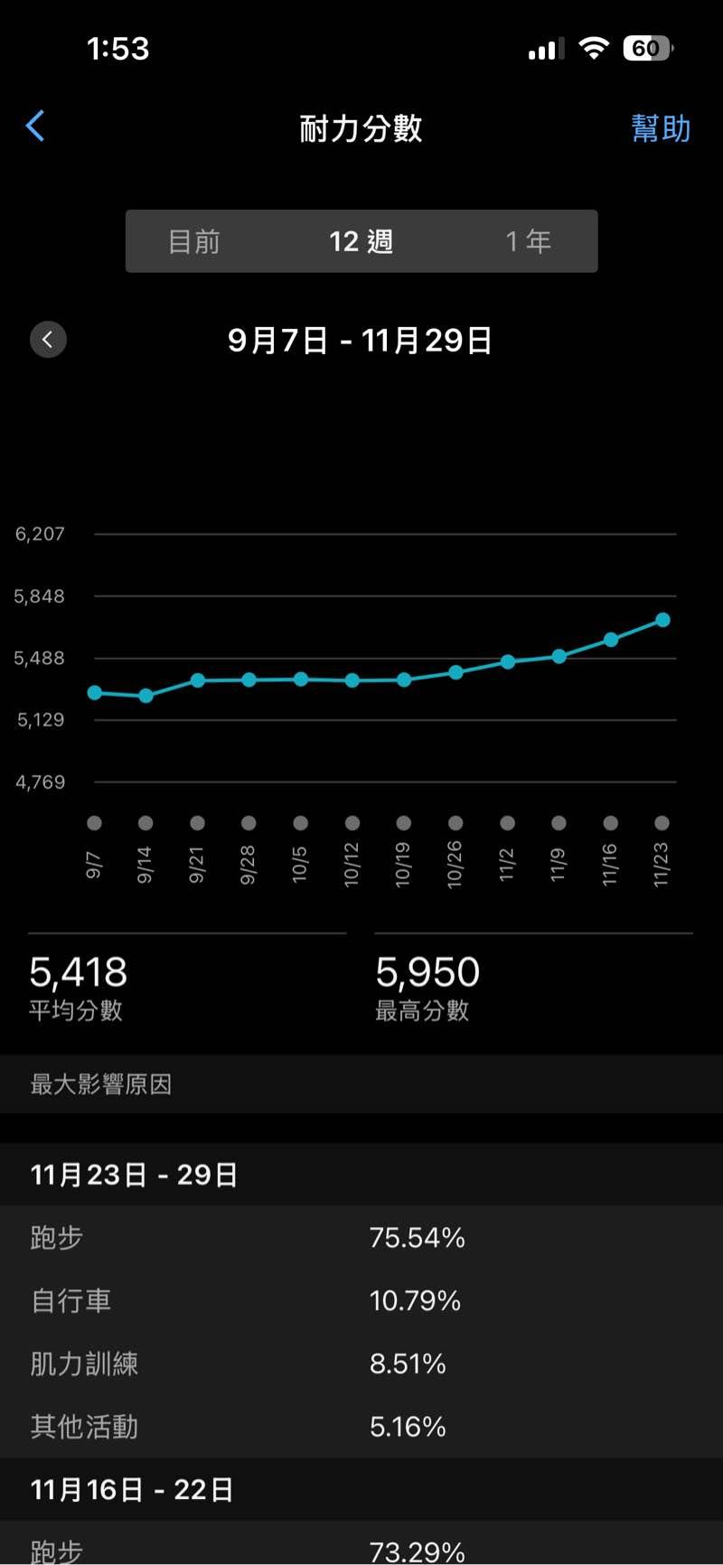 * 超過60小時沒有運動則視為中斷 *