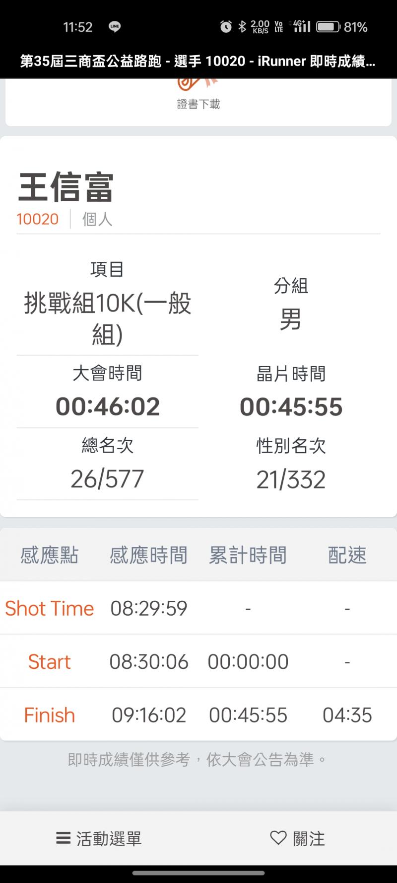 阿信 的運動曆