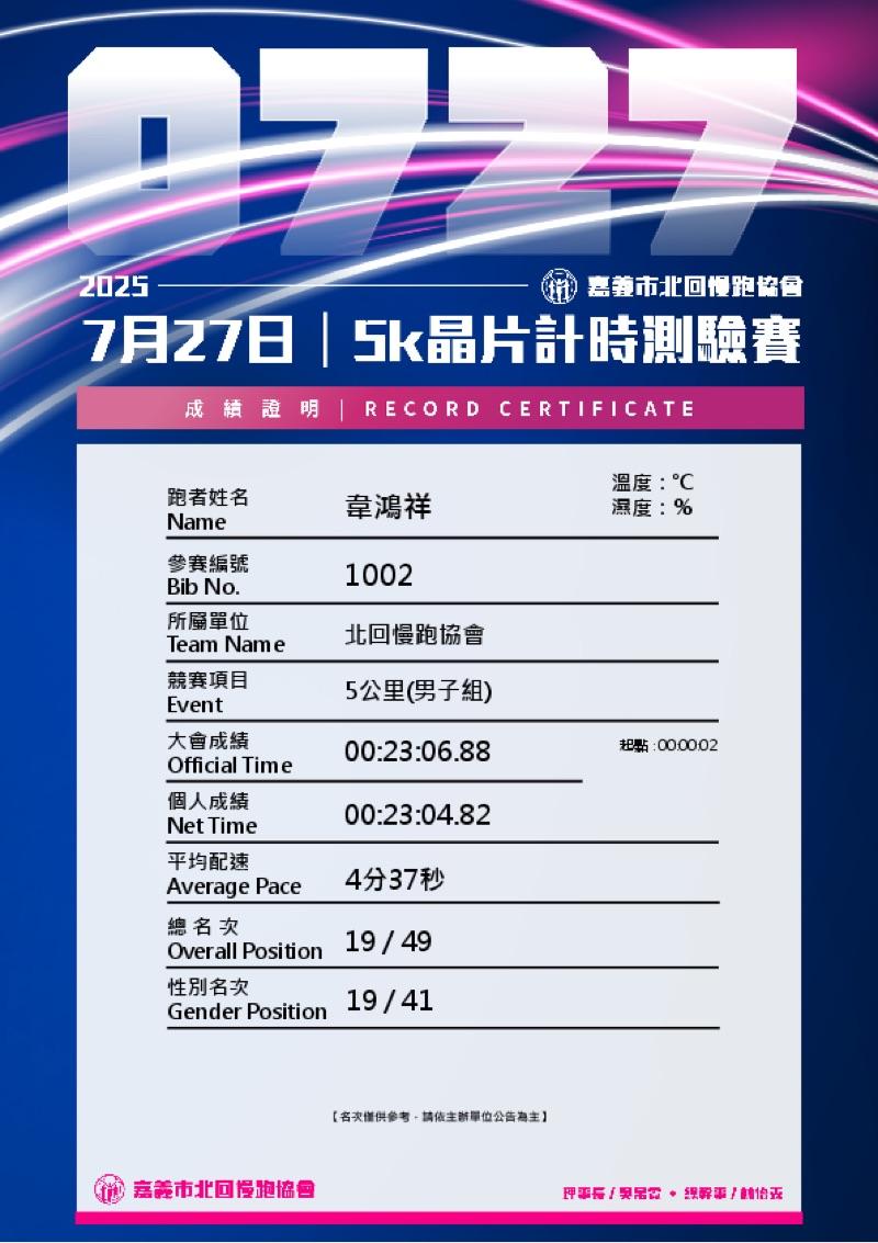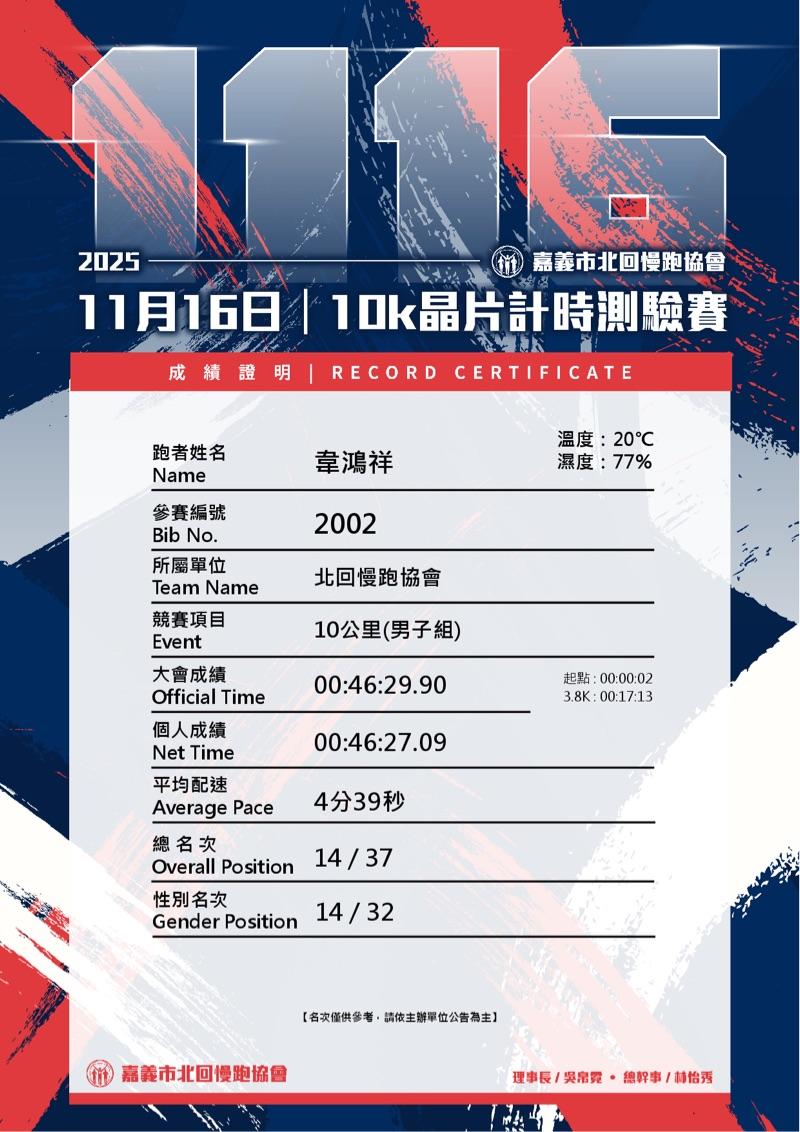 韋鴻祥 已連續運動