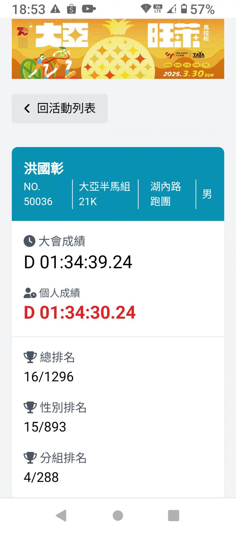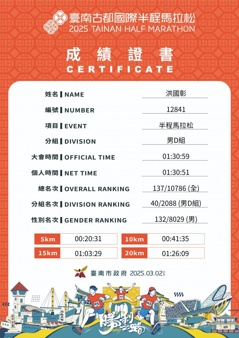 洪國彰 的運動曆