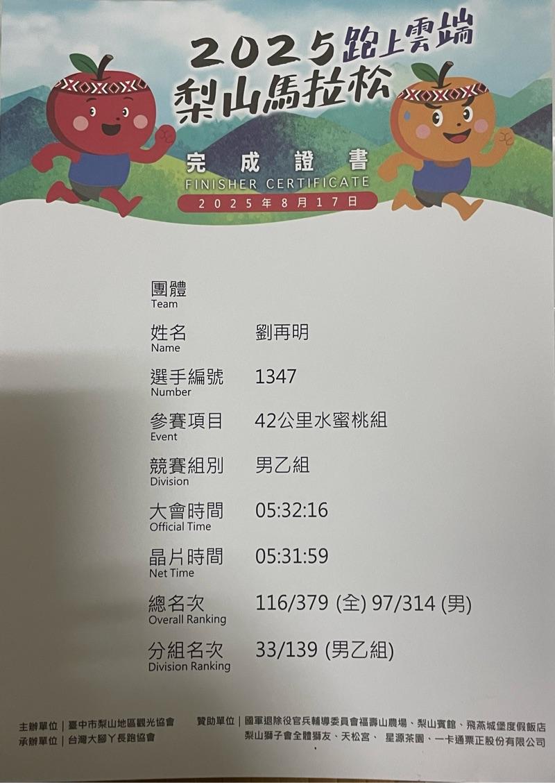 劉再明 的運動日誌(2025年12月)