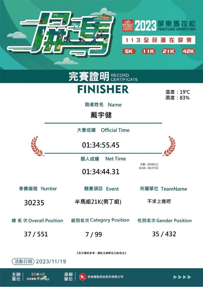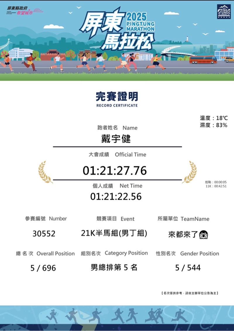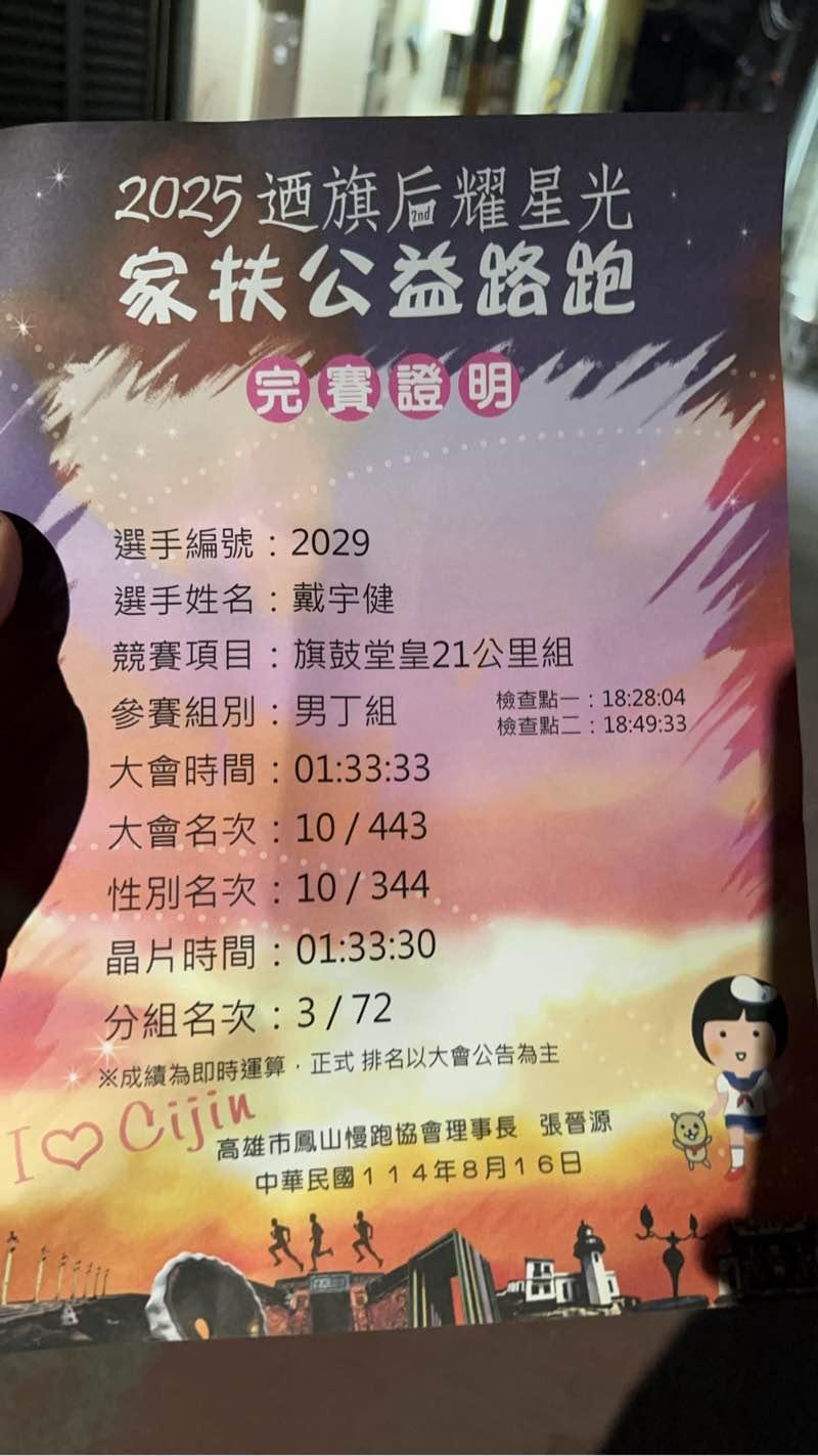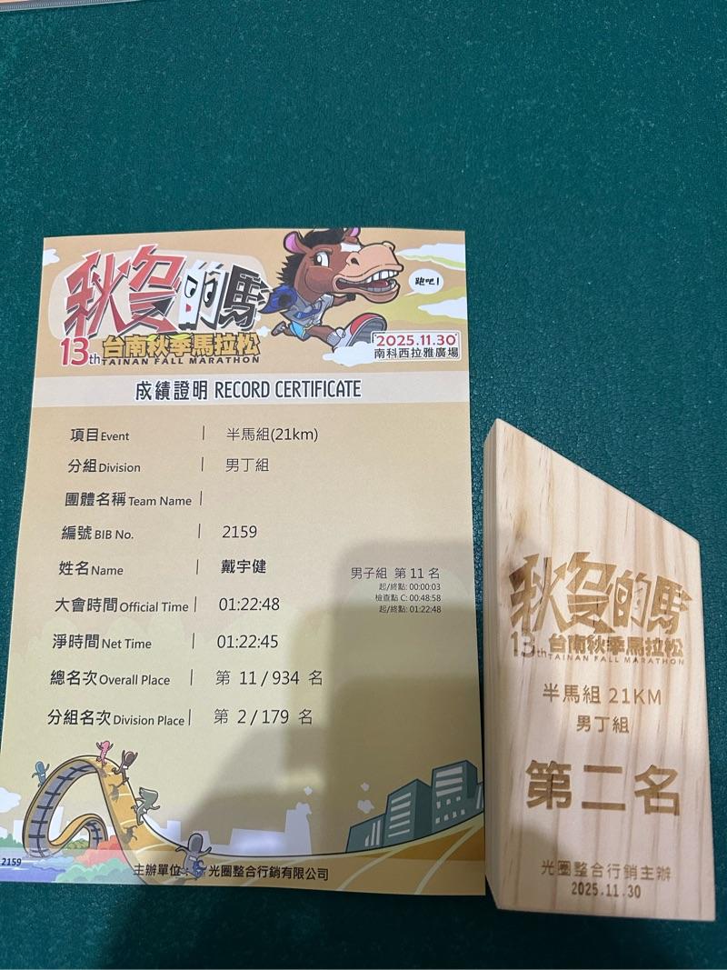 2025/12/28 戴宇健 完成了第 10 半馬! - 2025 扶輪盃 為愛發聲公益路跑賽