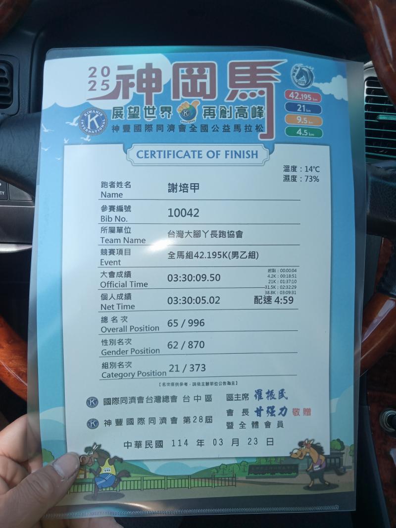 謝甲 已連續運動